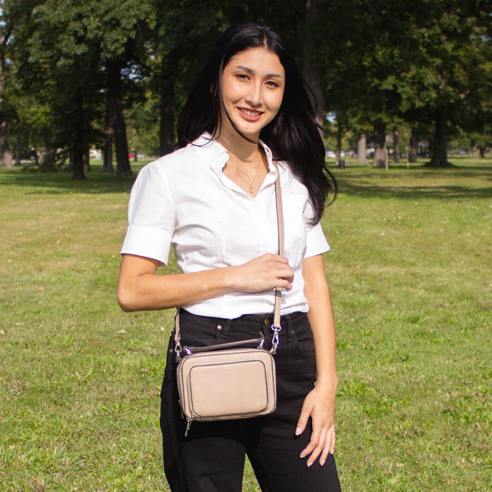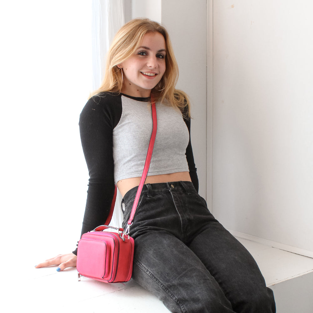 Inspired by a camera bag, the Kelsey bag can organize everything you need! This structured design and lively colors pair well with both classic and youthful looks.