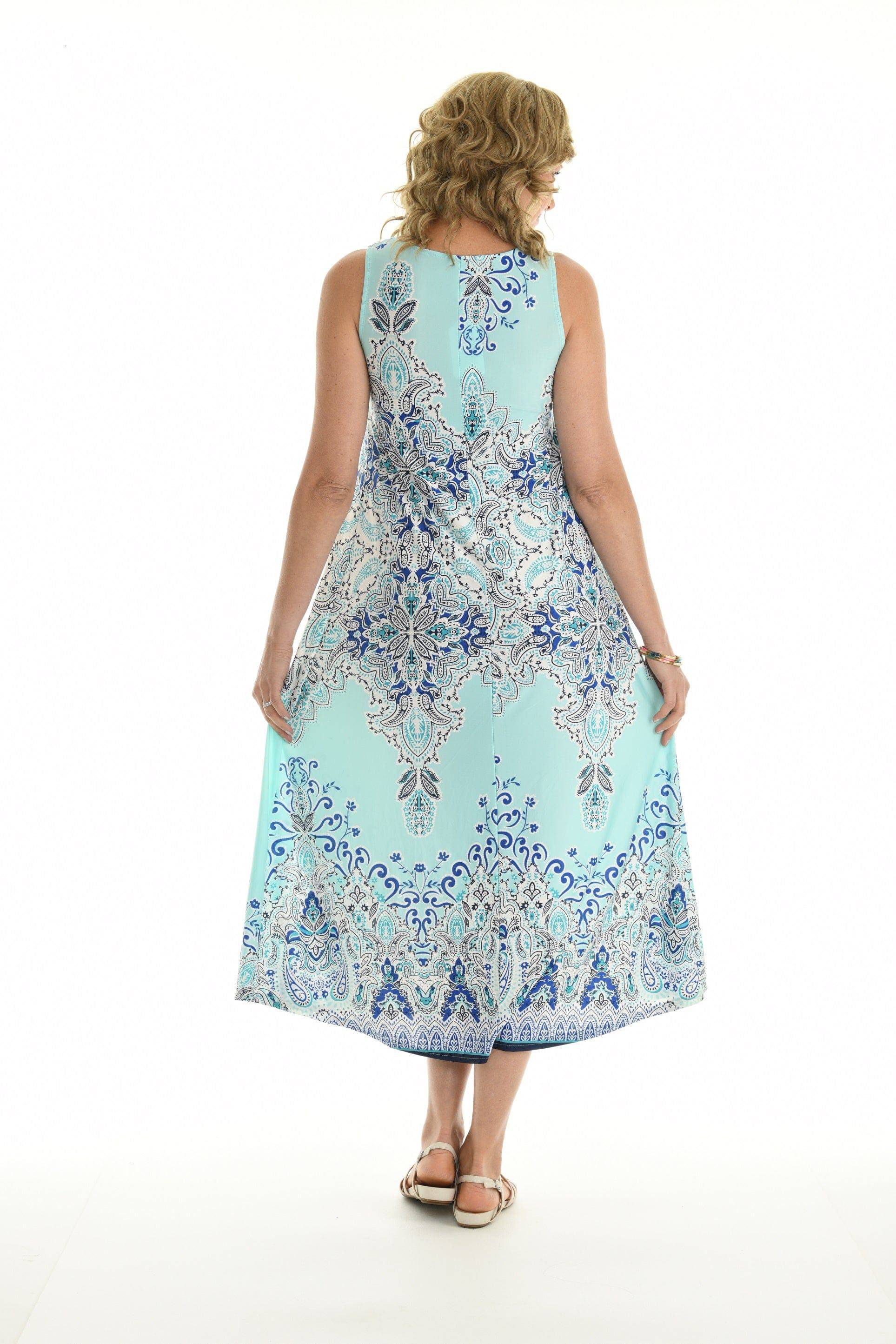 Easily dressed up with heels or dressed down with sandals, this sleeveless maxi dress will add a boho vibe to your look with its relaxed fit and bold print.