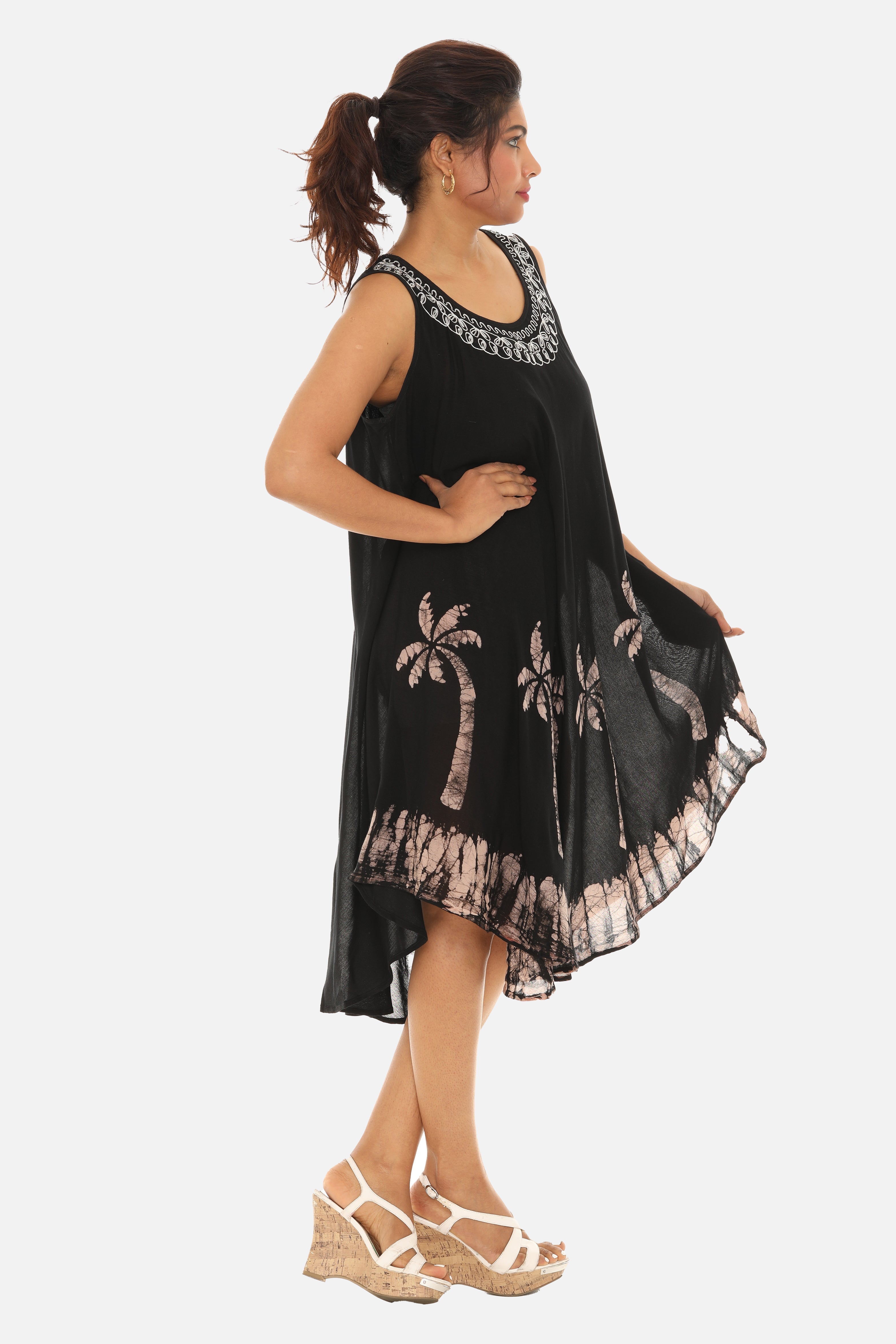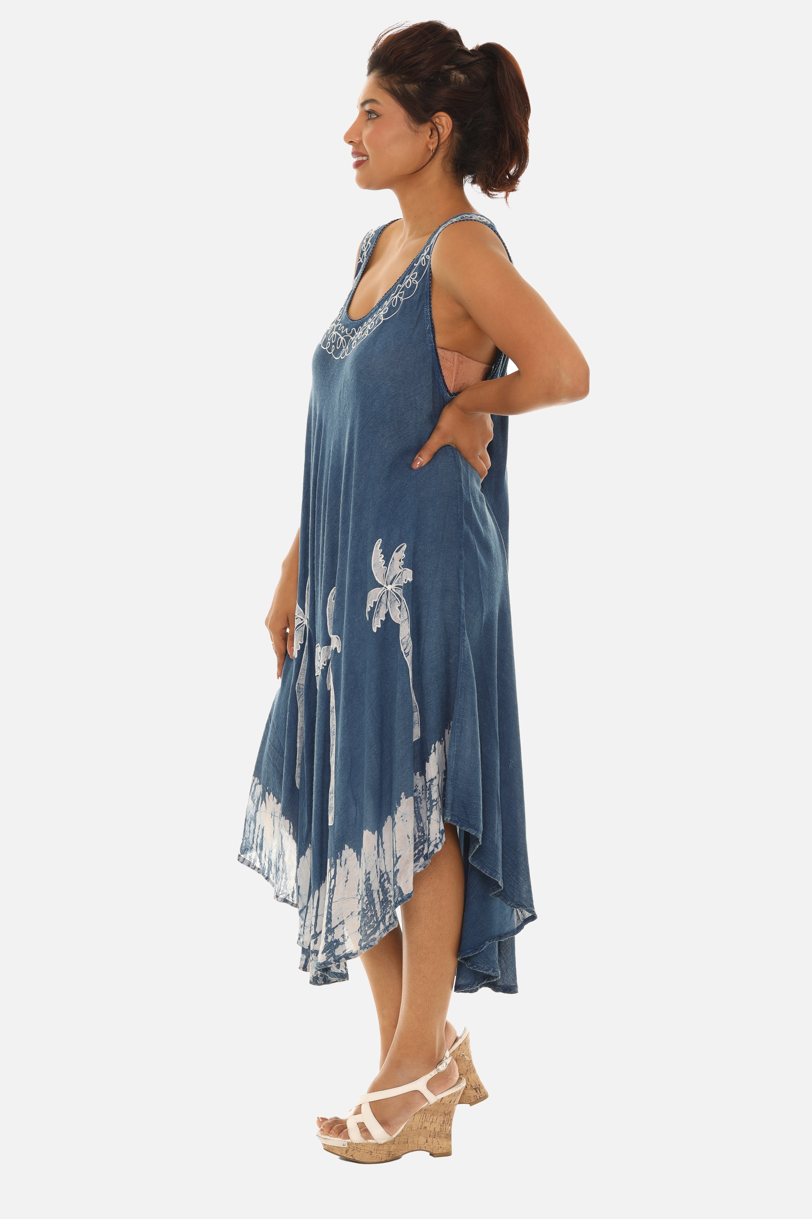 Palm Tree Batik Asymmetrical Hem Shift Dress