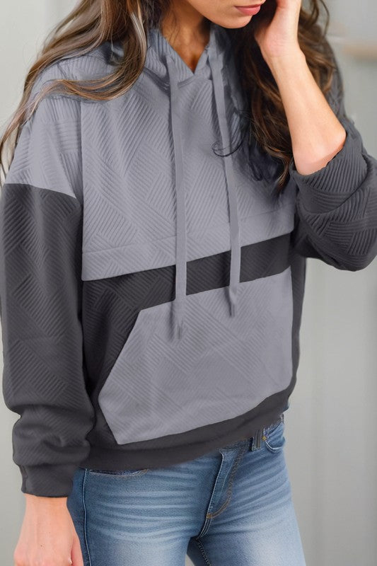 Patchwork Kangaroo Pocket Drop Shoulder Hoodie