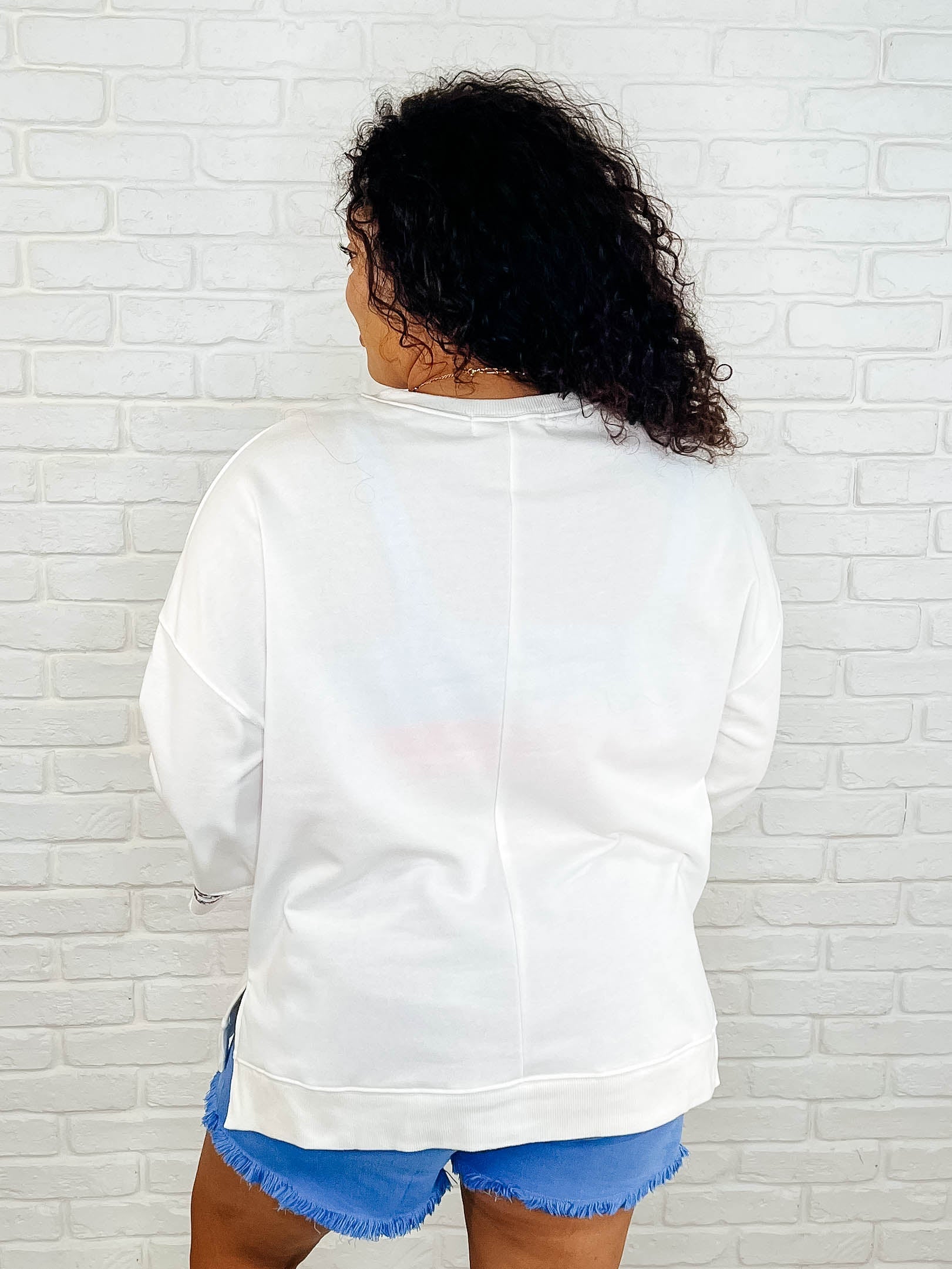 Get ready for some flower power with our Peace, Love, and Flowers top! Made with soft French Terry fabric, this top features a banded ribbed neckline and hemline, drop shoulder design, and raw sleeve cuffs. The unique stitched floral appliqué peace sign adds an extra touch of whimsy. (It's groovy, man.)