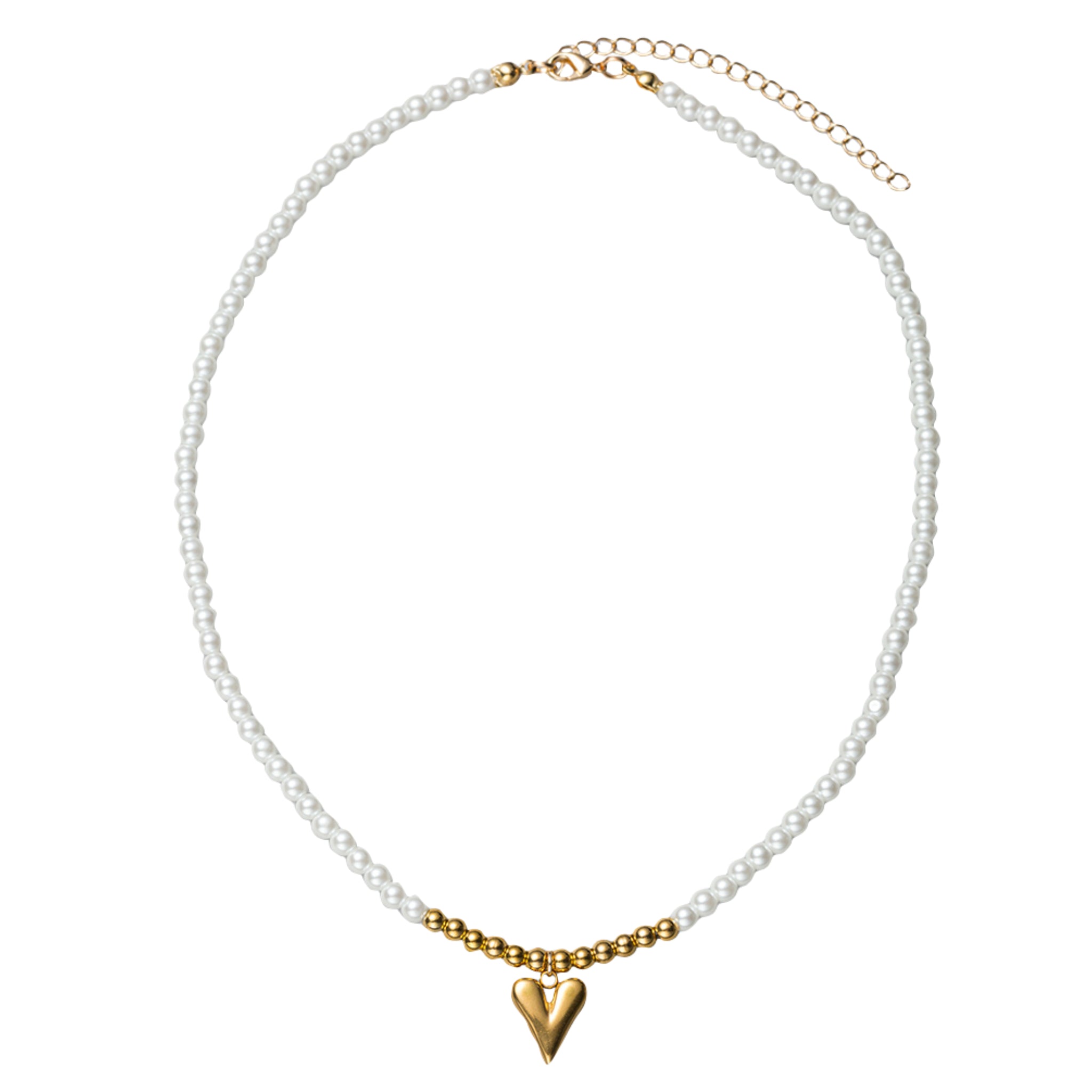 Pearl Beaded Necklace with Gold Heart