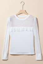 Pearl Decor Mesh Patchwork Ribbed Long Sleeve Top