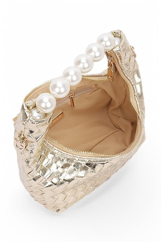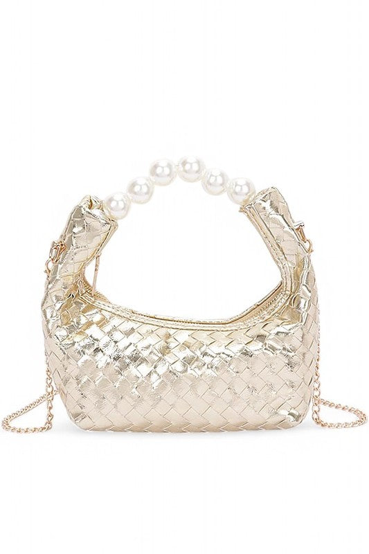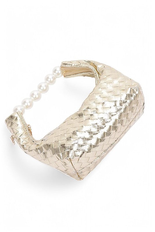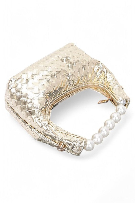 Pearl Handle Metallic Small Convertible Clutch Bag
