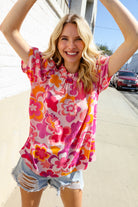 Perfectly You Fuchsia Big Floral Frill Neck Back Button Blouse