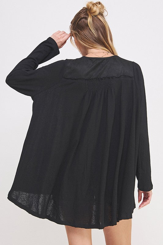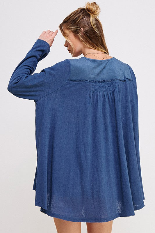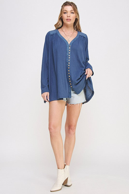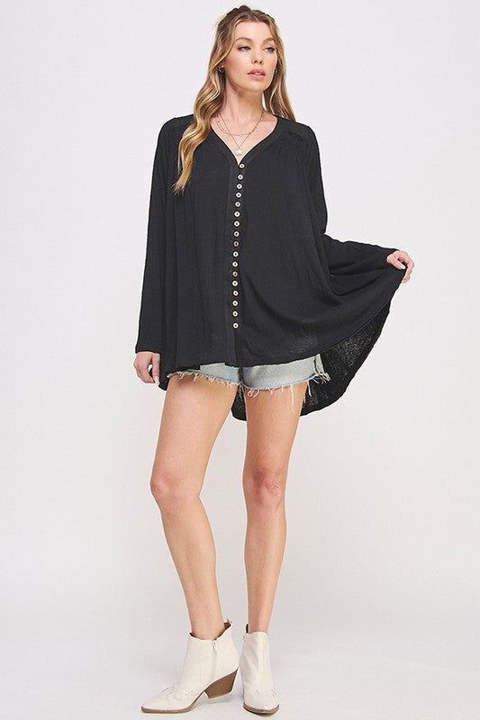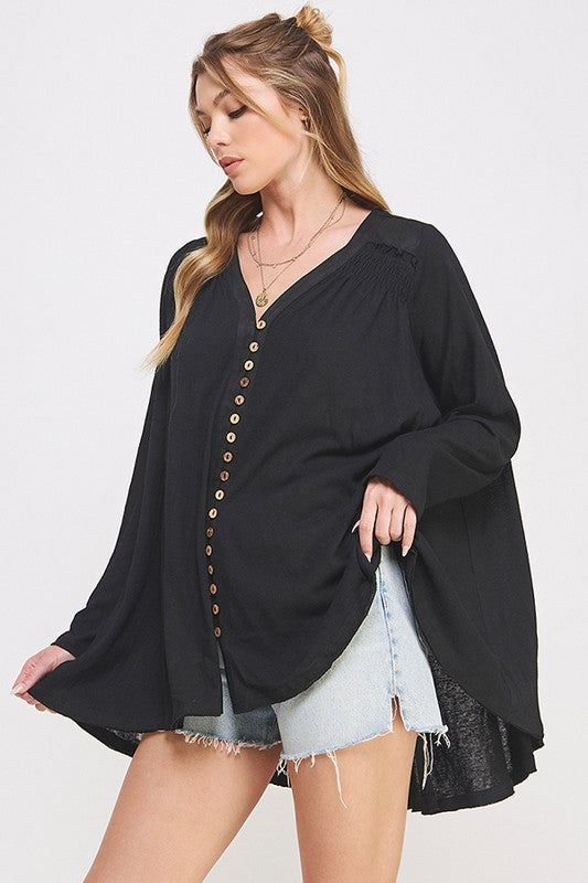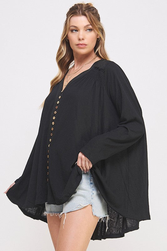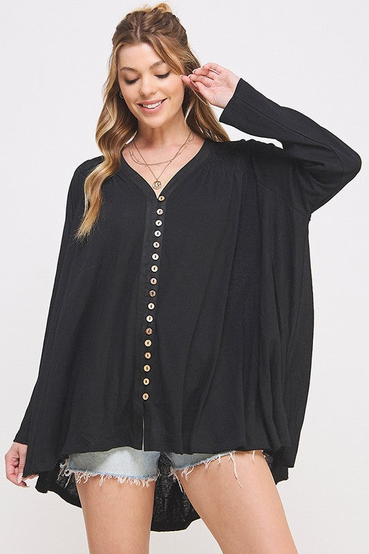 PLUS SIZE LONG SLEEVE V-NECK OVERSIZED BUTTON DOWN TUNIC