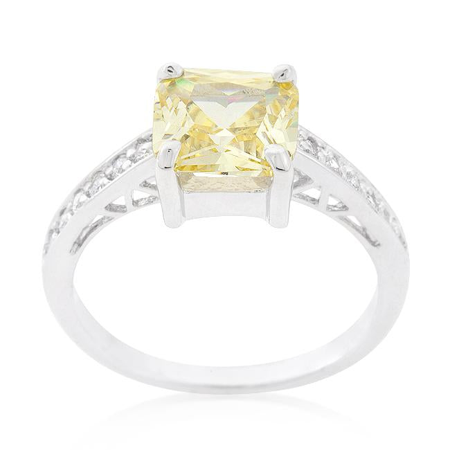 Princess Bella is an absolutely stunning cubic zirconia engagement ring featuring princess cut cubic zirconia at 1.85 ct and pave cz band in rhodium over brass. White Gold Rhodium Bond is achieved using an electroplating process that coats the item with heavy layers of rhodium a close cousin to platinum which gives our jewelry a platinum luster.