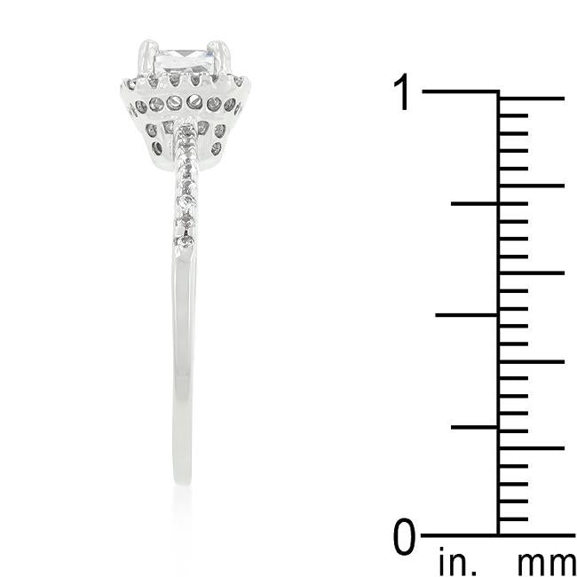 Feminine and elegant. Simple and sophisticated. Fashioned in an elegant cubic zirconia this elegant halo style would be adored by any woman. Our genuine rhodium finish is achieved using an electroplating process that coats the item with heavy layers of rhodium a close cousin to platinum which gives our jewelry a platinum luster.