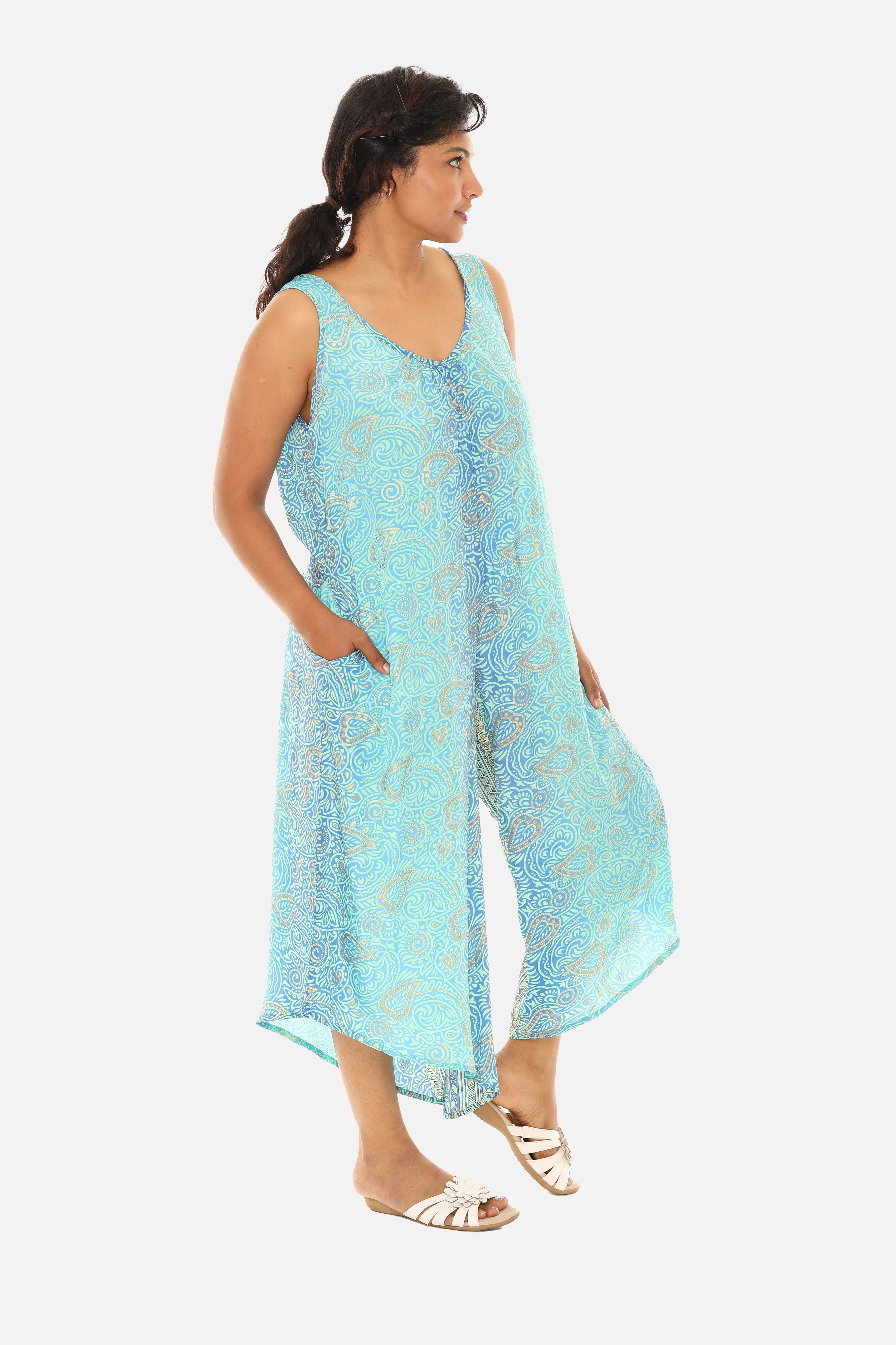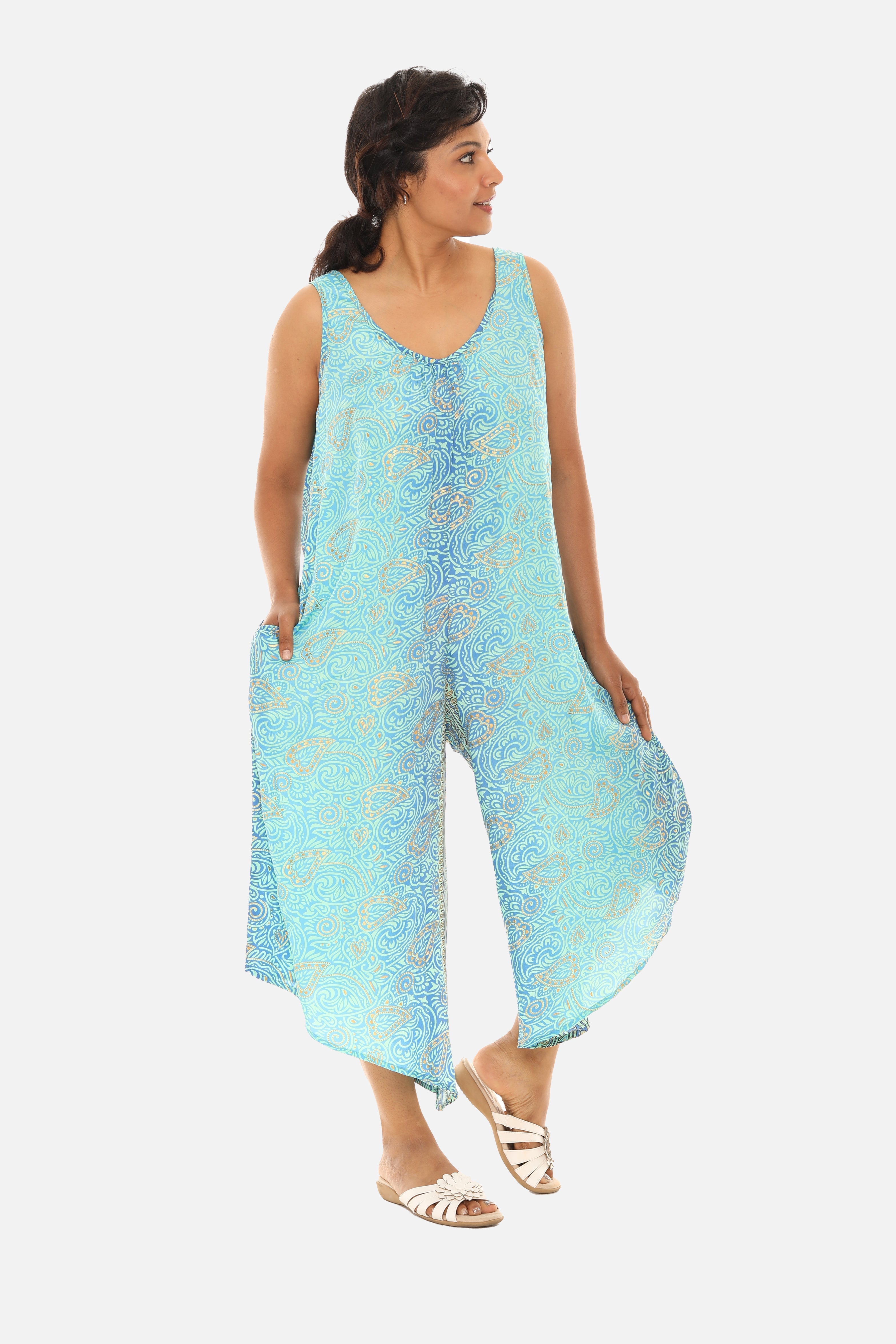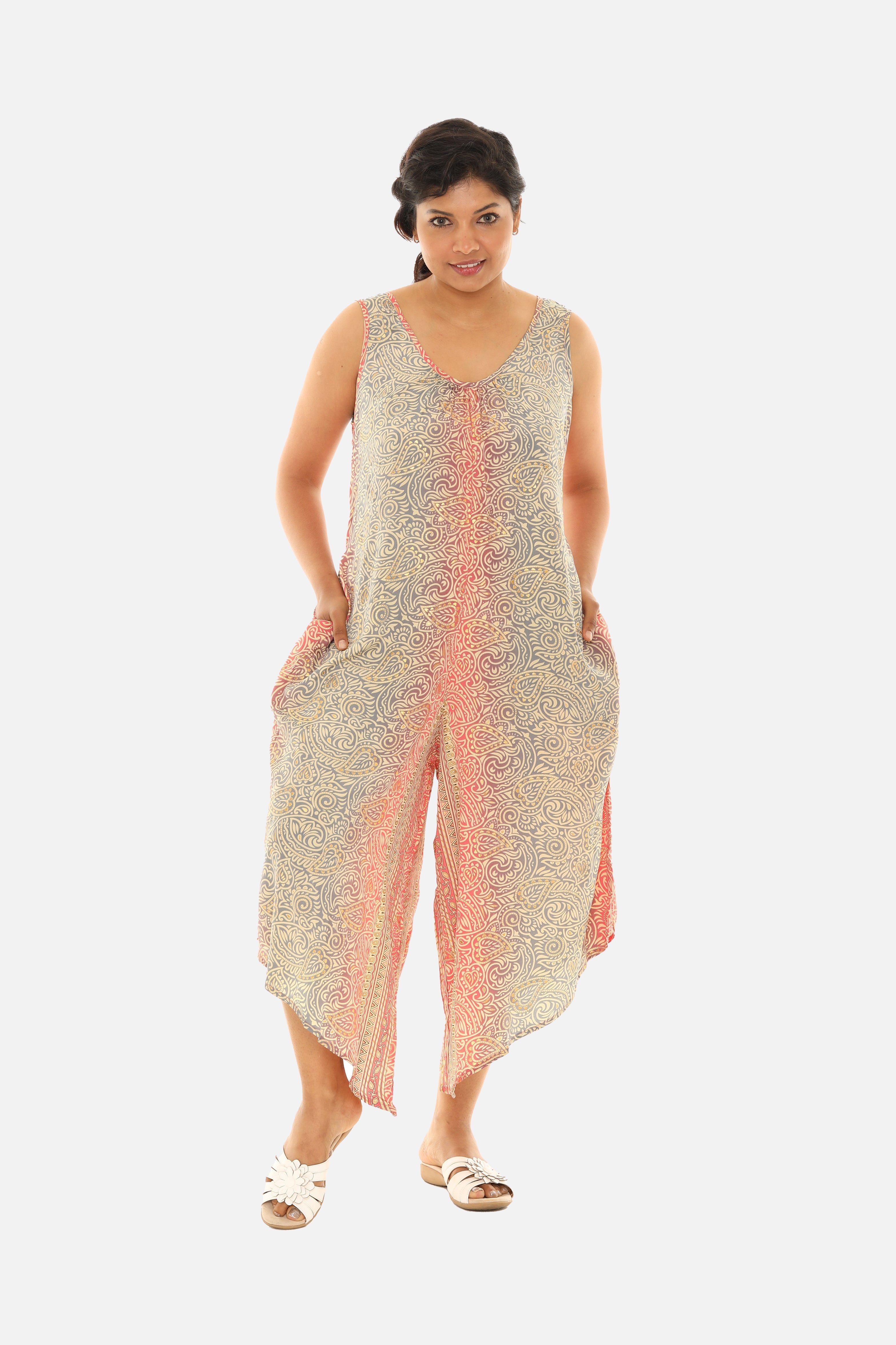 This printed art silk jumpsuit for women is a stylish and elegant addition to any wardrobe. Made from high-quality silk, it features a unique and eye-catching print that is sure to turn heads. The jumpsuit is designed to be both comfortable and flattering, with a fitted waist and a loose, flowing silhouette that drapes beautifully over the body. Perfect for a night out or a special occasion, this jumpsuit is the epitome of effortless chic.