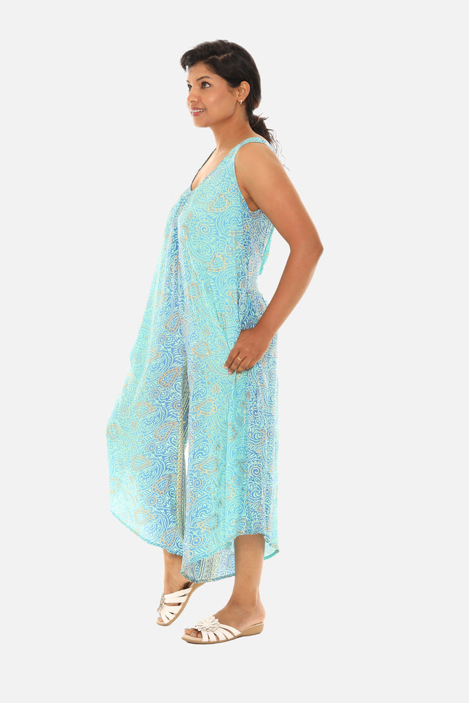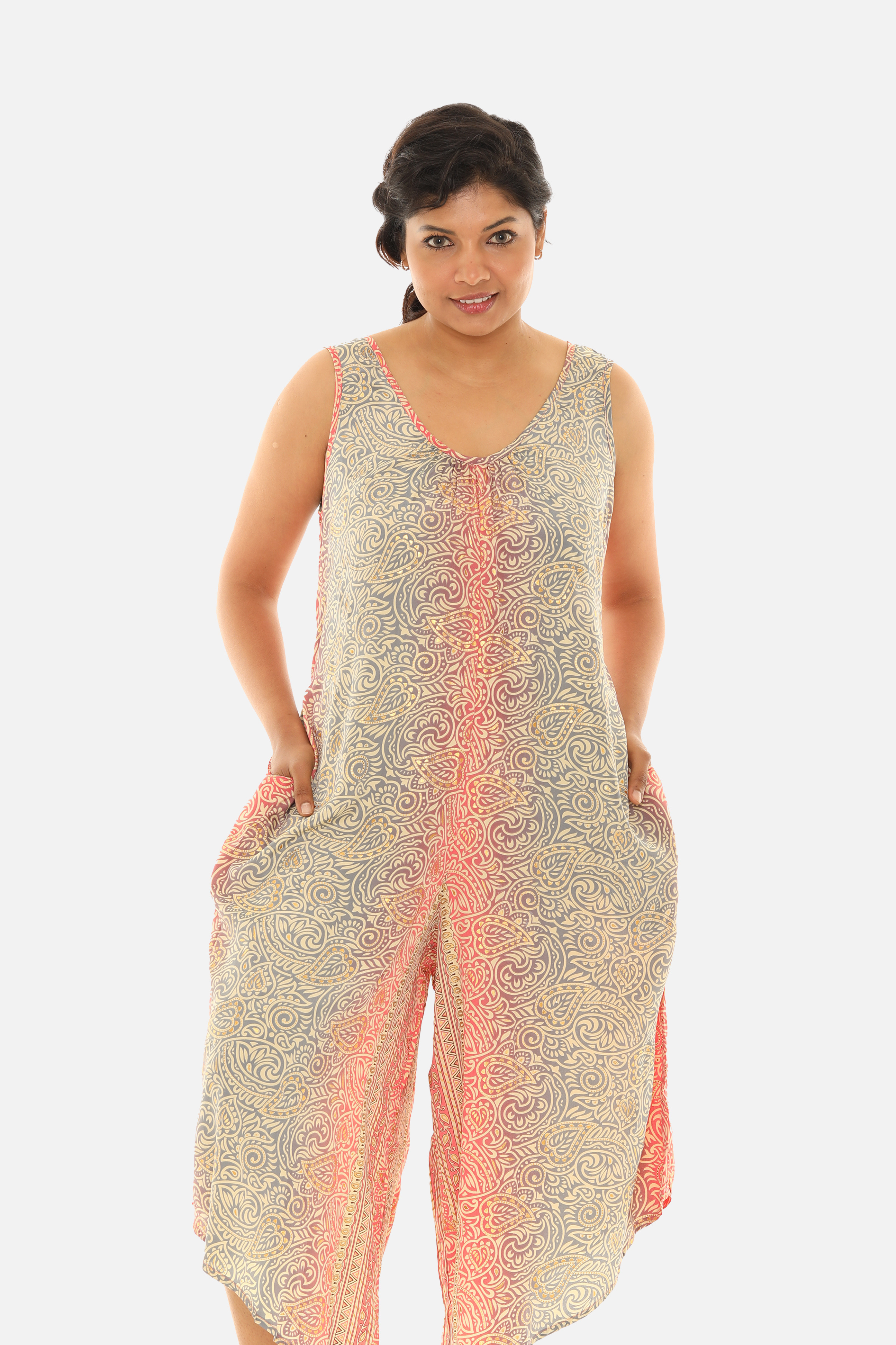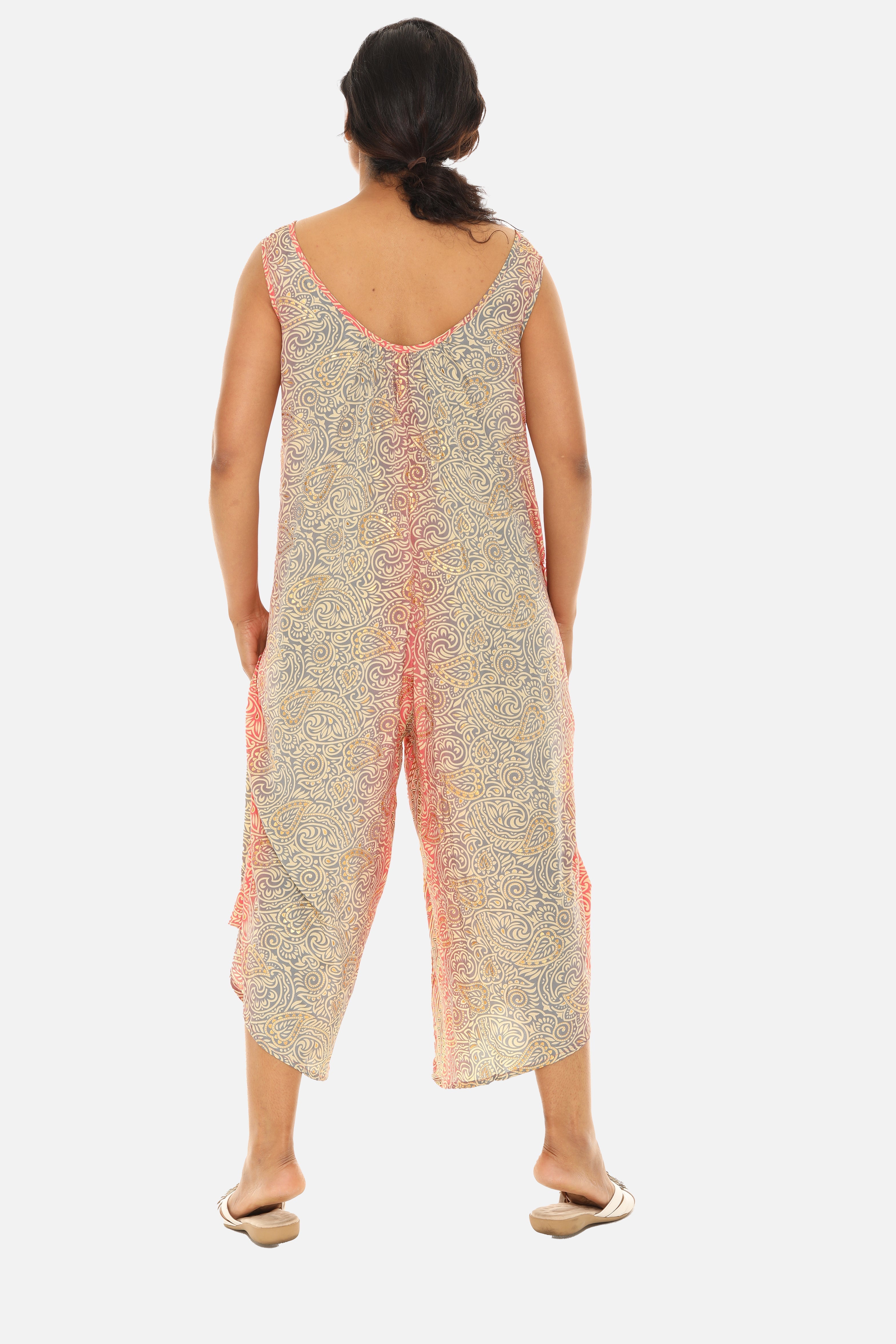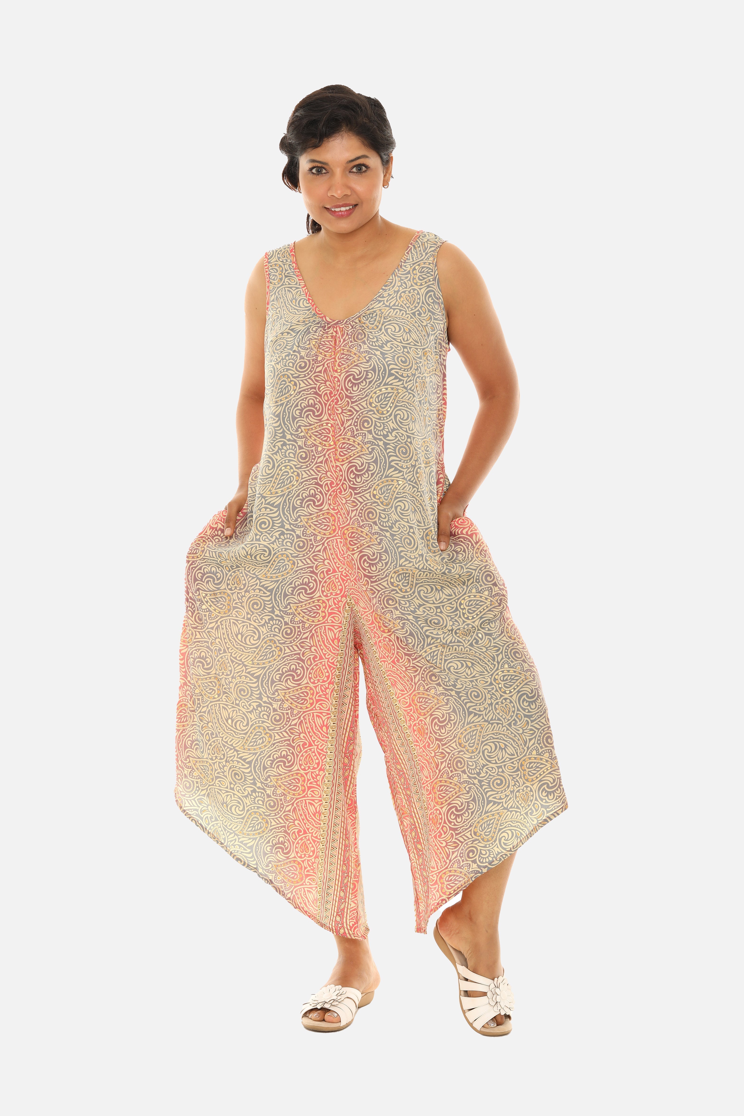 This printed art silk jumpsuit for women is a stylish and elegant addition to any wardrobe. Made from high-quality silk, it features a unique and eye-catching print that is sure to turn heads. The jumpsuit is designed to be both comfortable and flattering, with a fitted waist and a loose, flowing silhouette that drapes beautifully over the body. Perfect for a night out or a special occasion, this jumpsuit is the epitome of effortless chic.