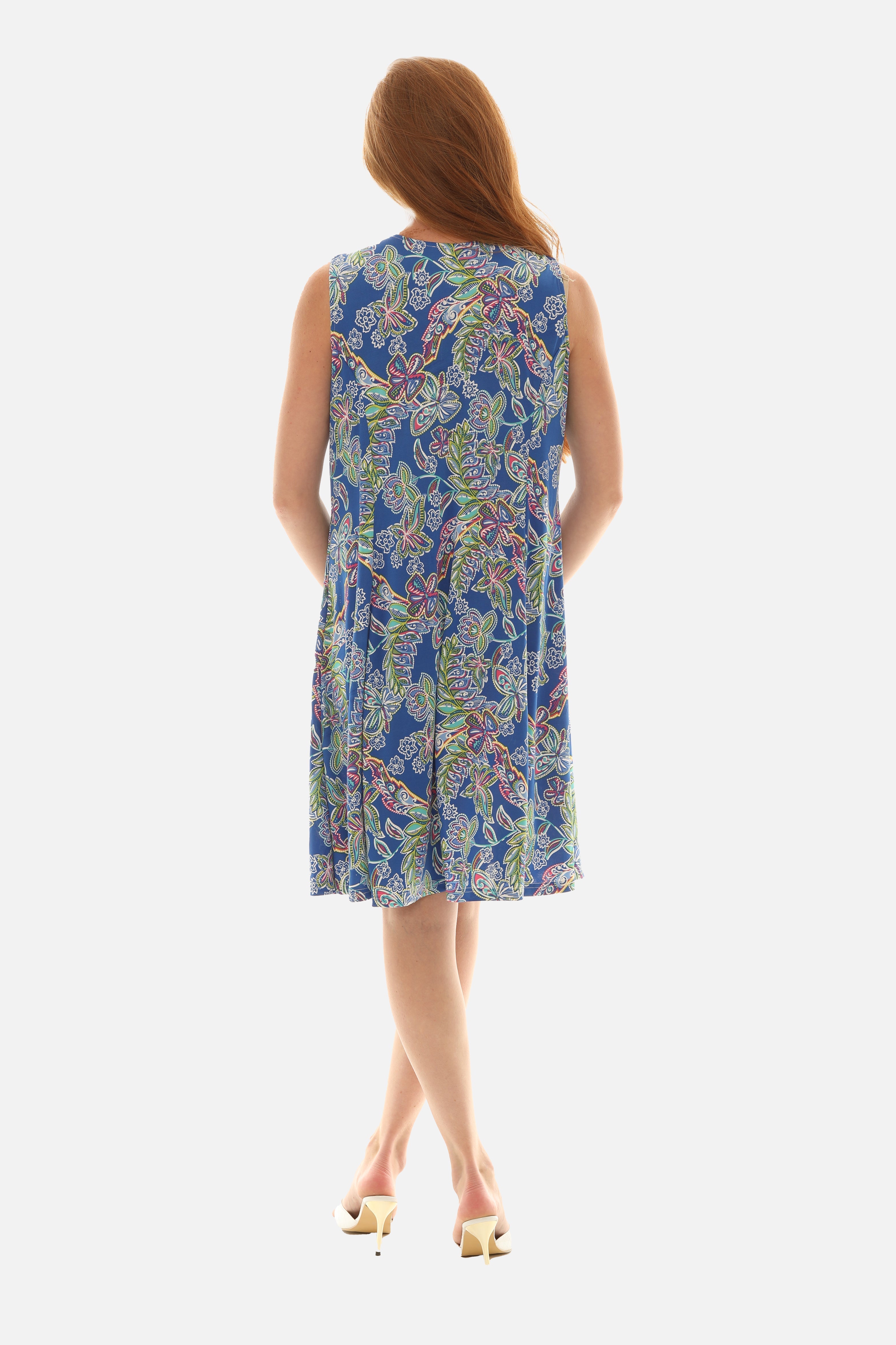 Printed Sleeveless Floral Dress with Embellished V-Neck