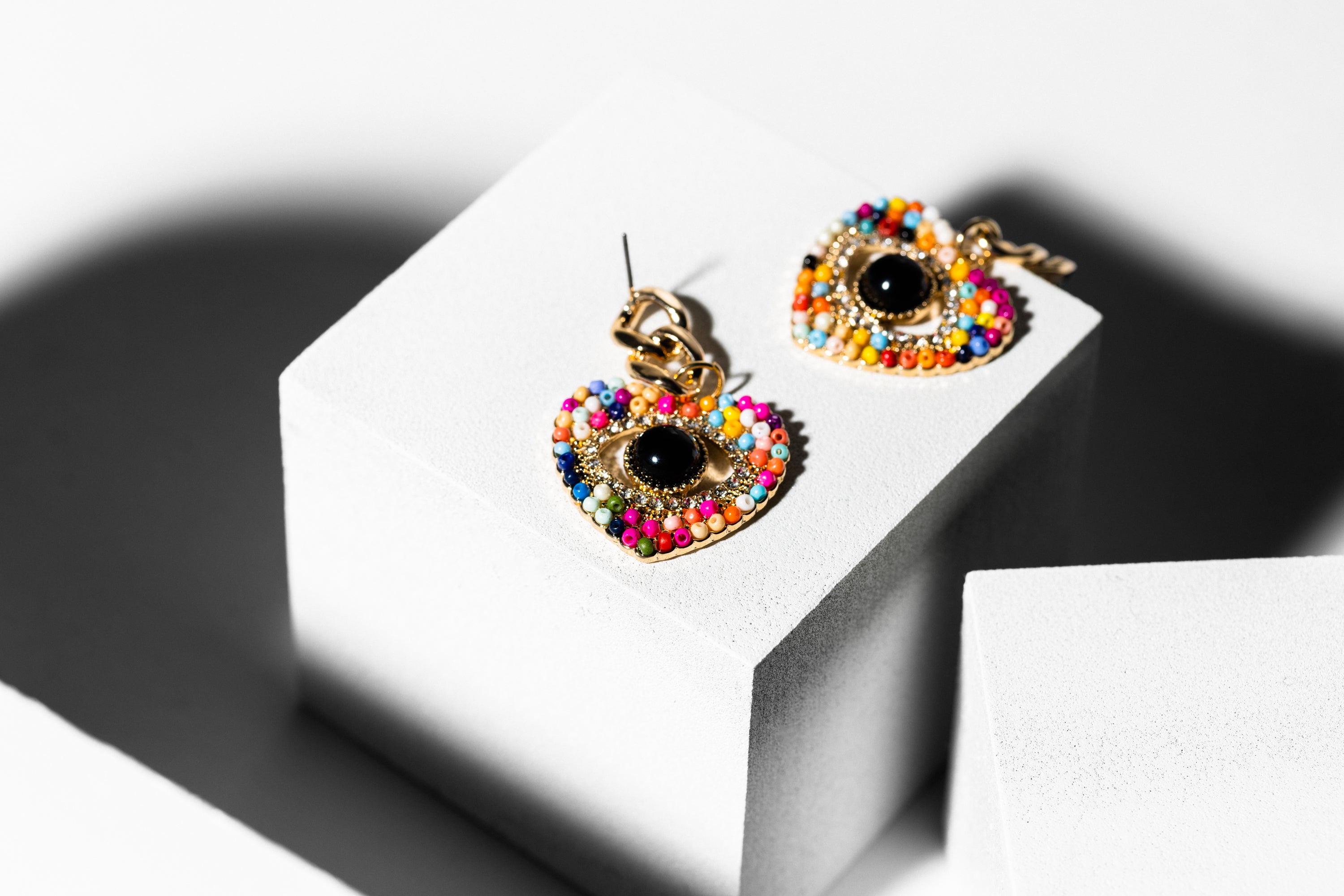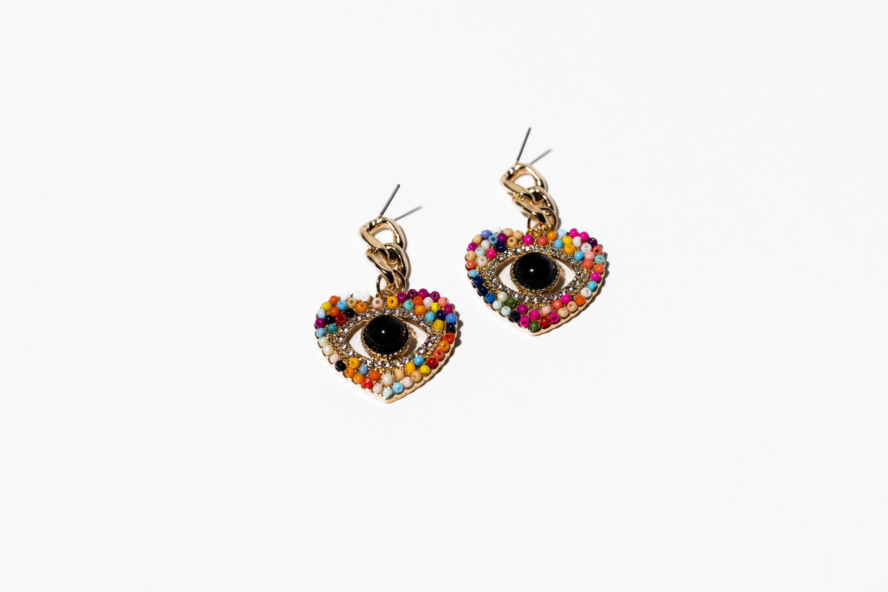 Rainbow Beaded Evil Eye Earring