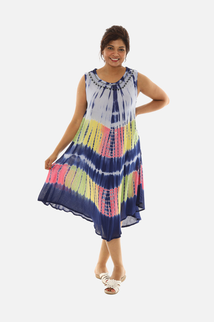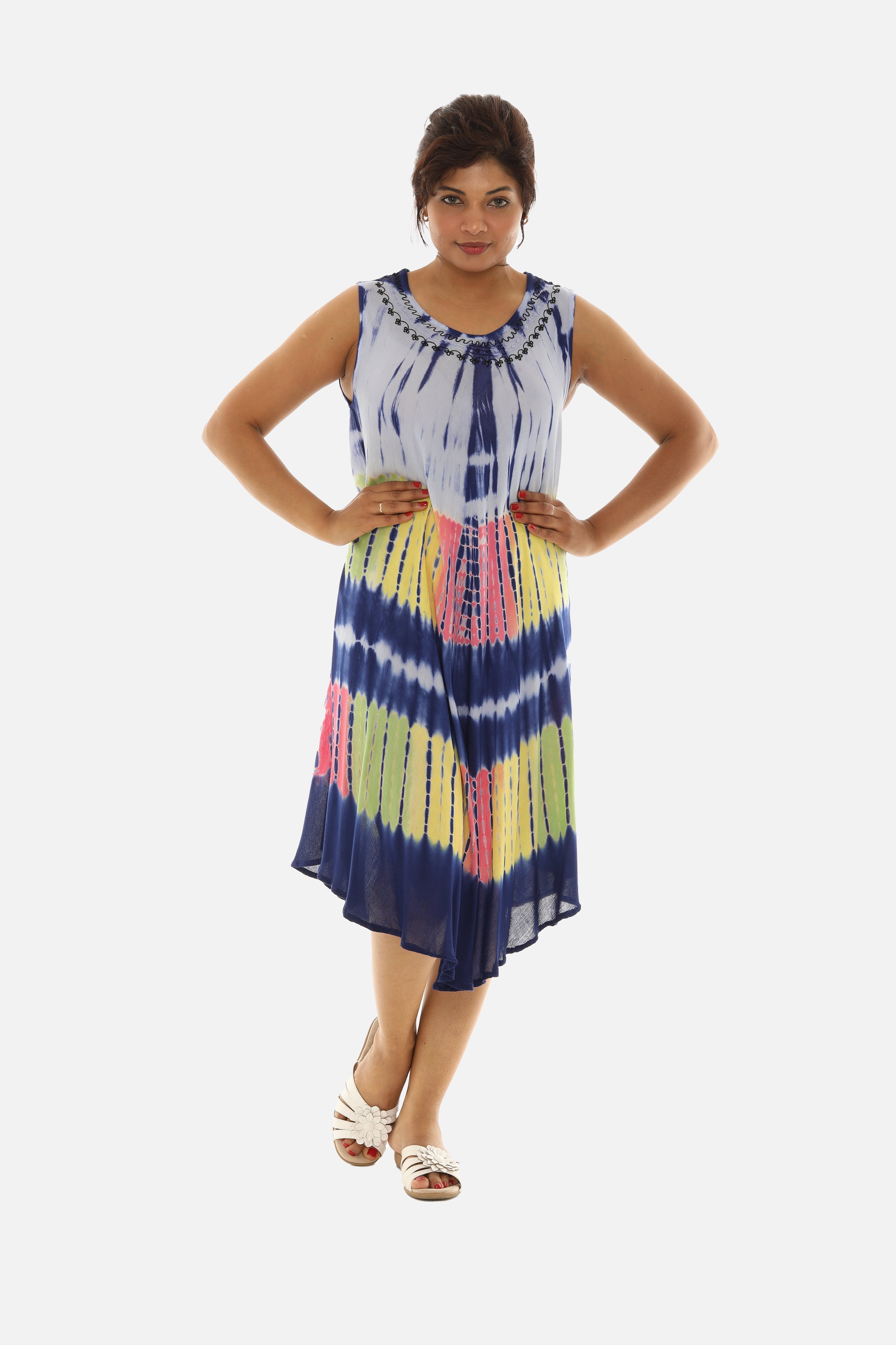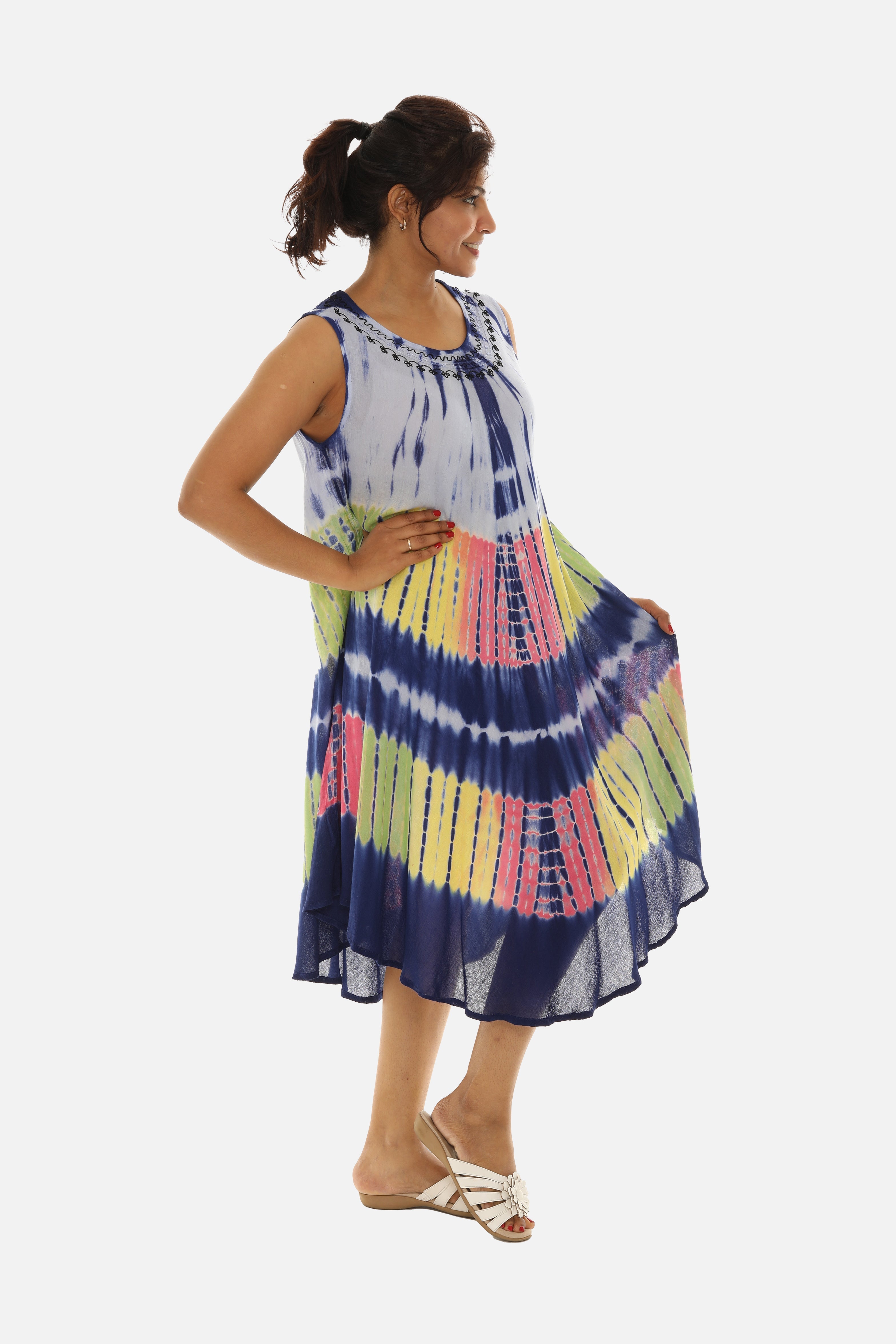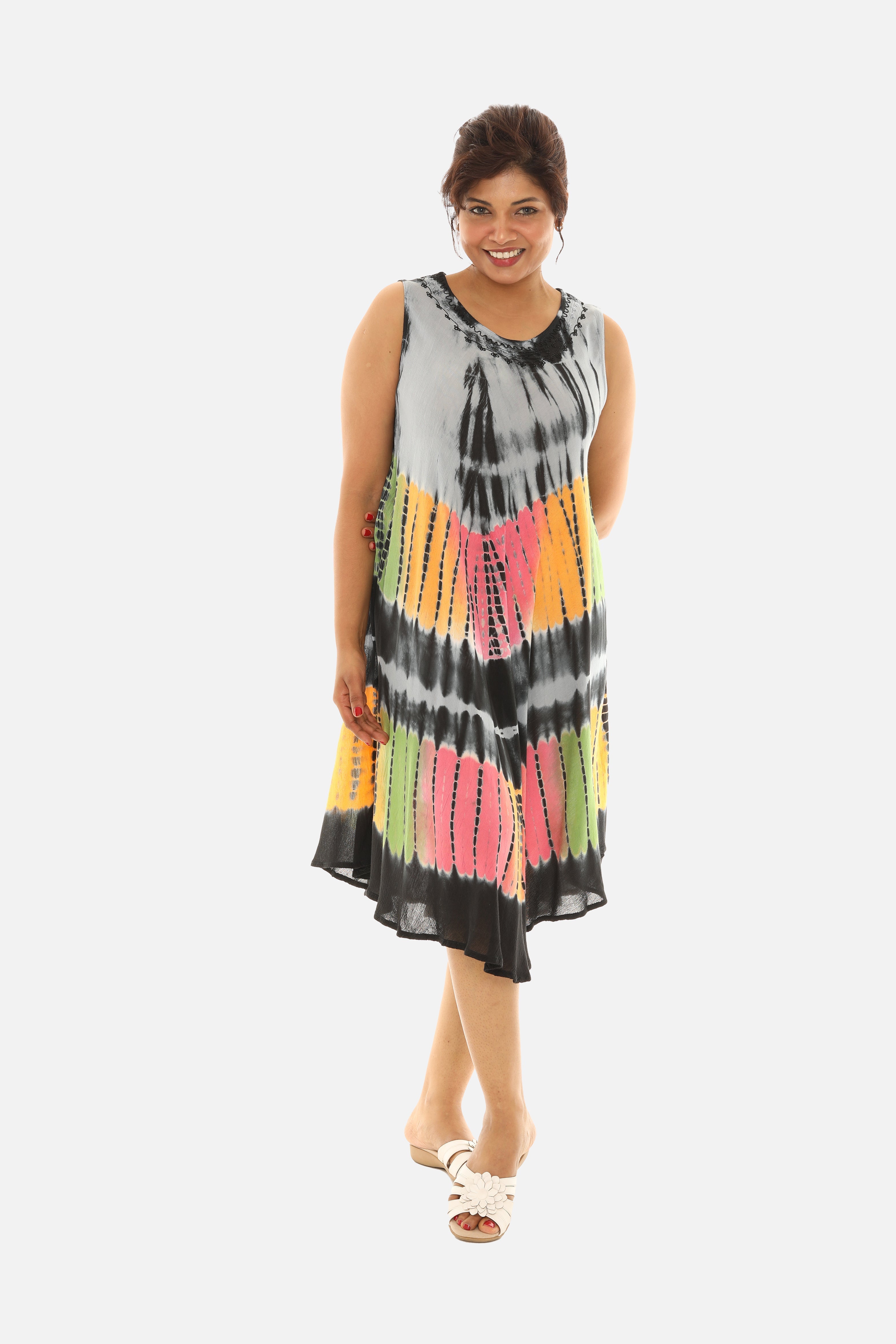 This Rayon Tie Dye Dress for Women is an essential addition to any wardrobe. Itβs made from lightweight rayon fabric, making it ideal for summer or warm-weather events. The unique tie dye pattern adds a unique, eye-catching look to this dress. The loose, flowy fit is comfortable and flattering.