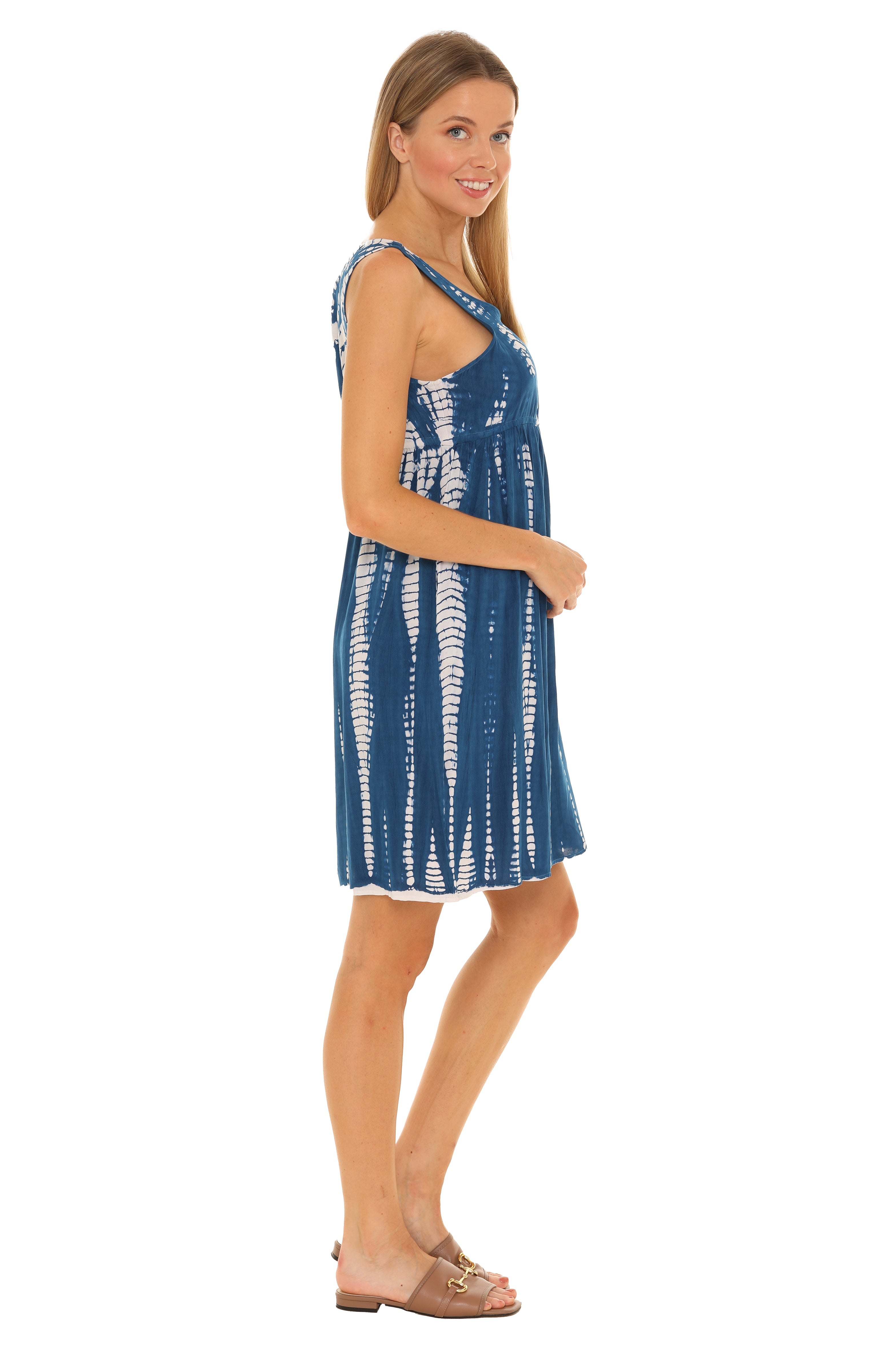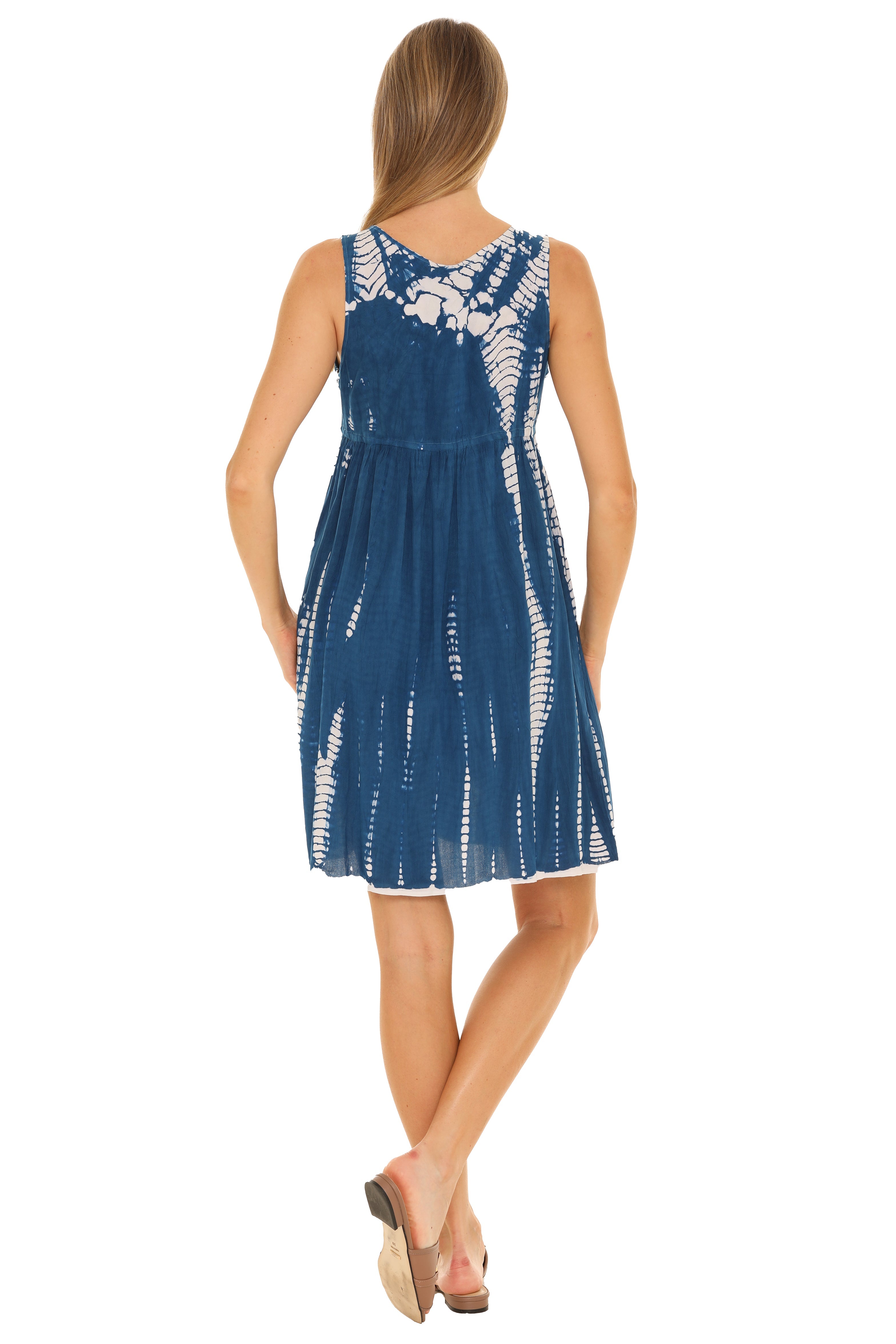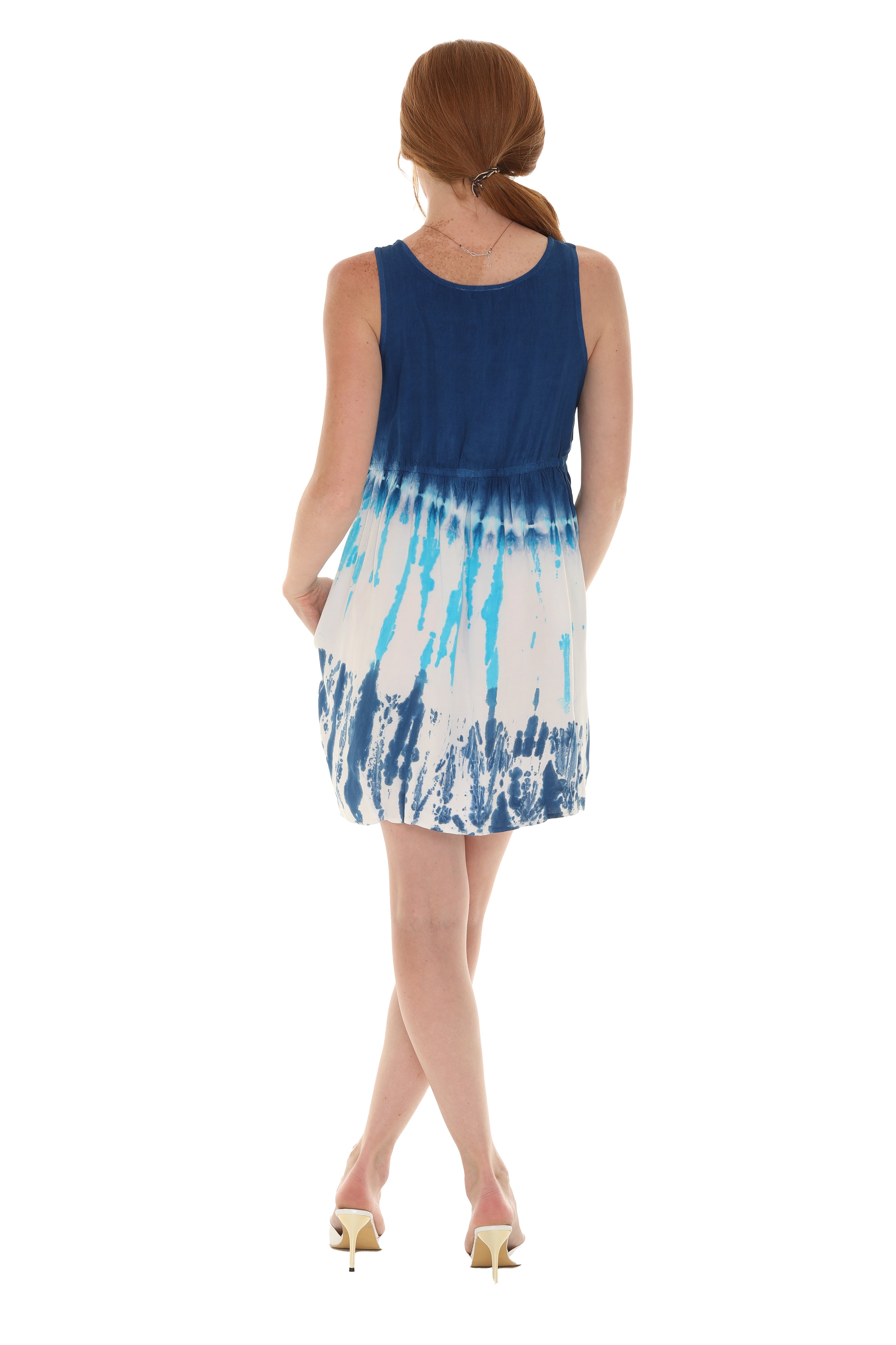 Rayon Vertical Pattern Tie Dye Sleeveless Dress