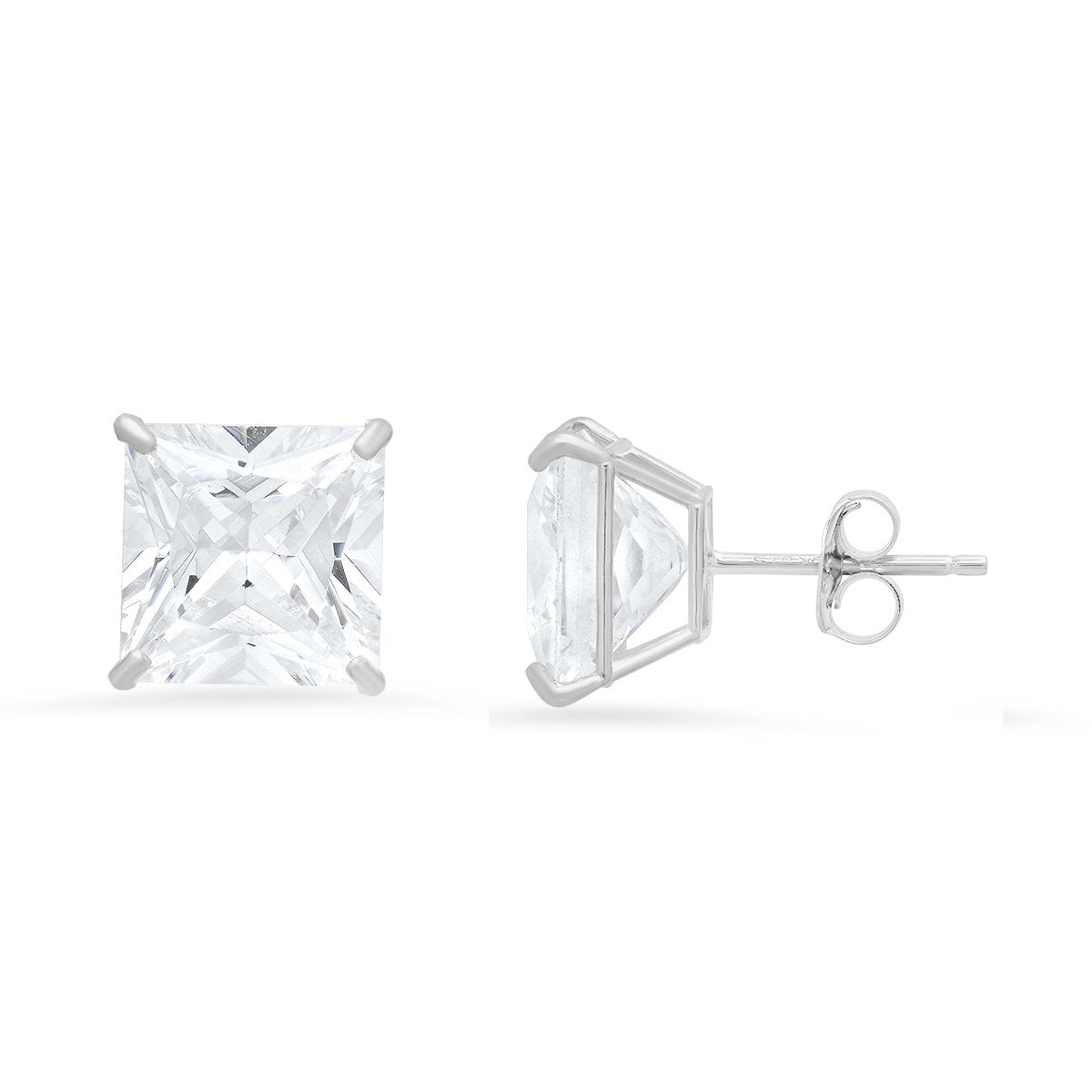 Real 10k Solid Gold BIG Princess-cut 8mm Diamond Stud Earrings