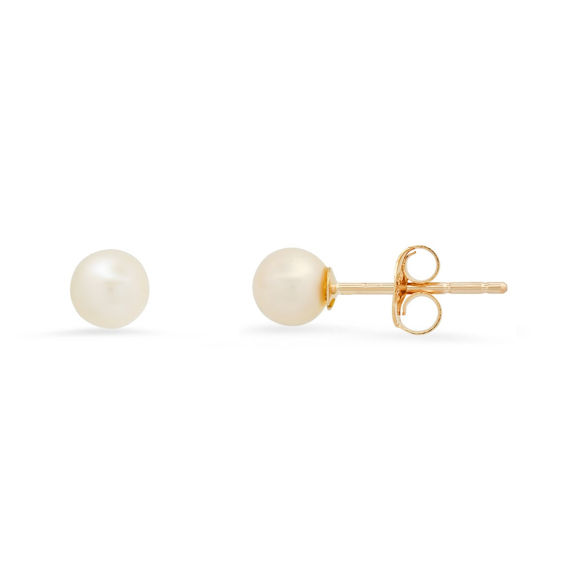 Real 10k Solid Gold Genuine Pearl Stud Earrings