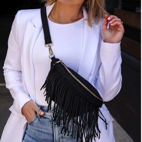 Enjoy the luxury of going hands-free and stylish with this Removable Fringe Fanny Pack. Designed to be Extremely comfortable, this belt bag has an interior pocket to keep your thing organized. Includes an adjustable hip to crossbody strap