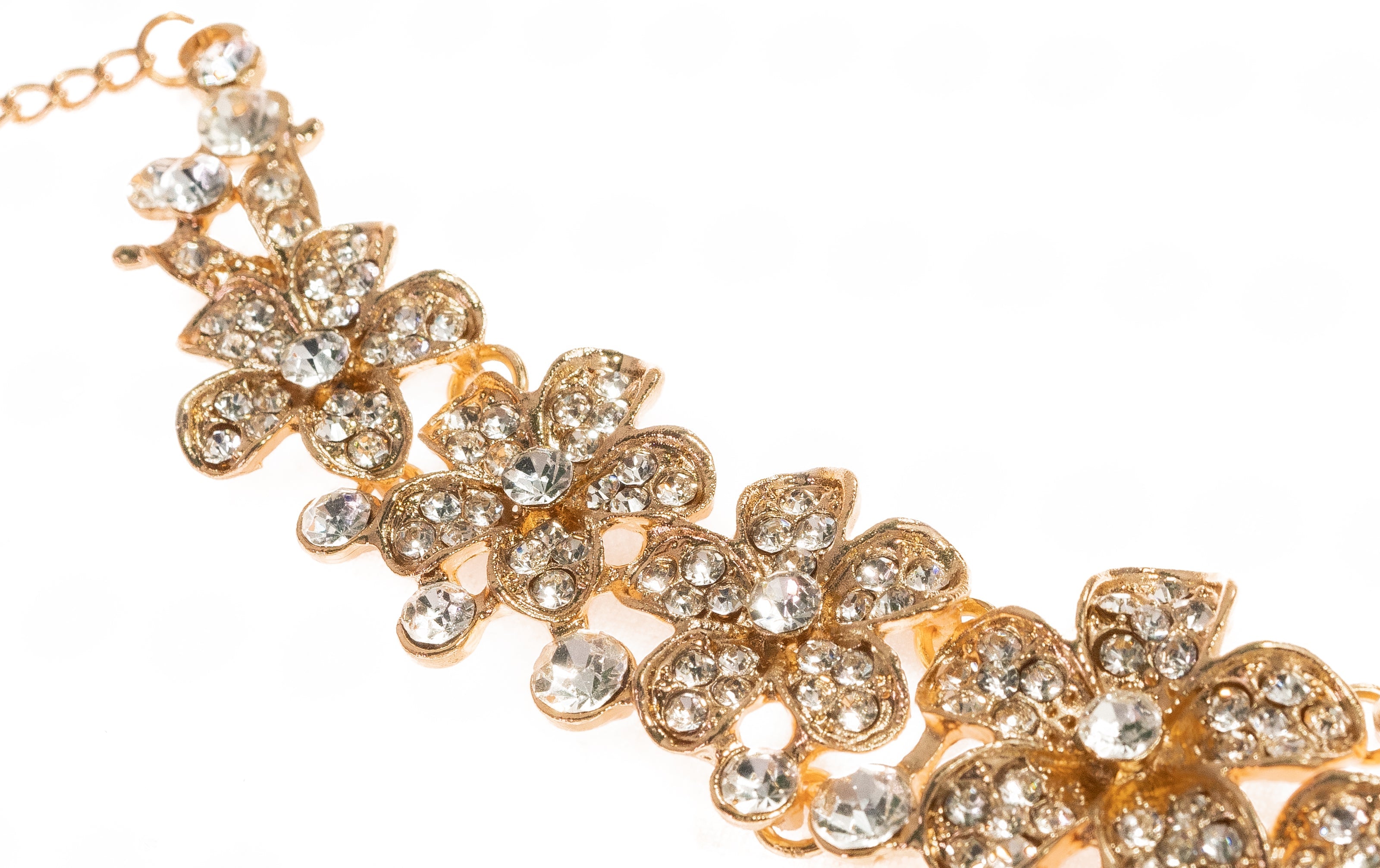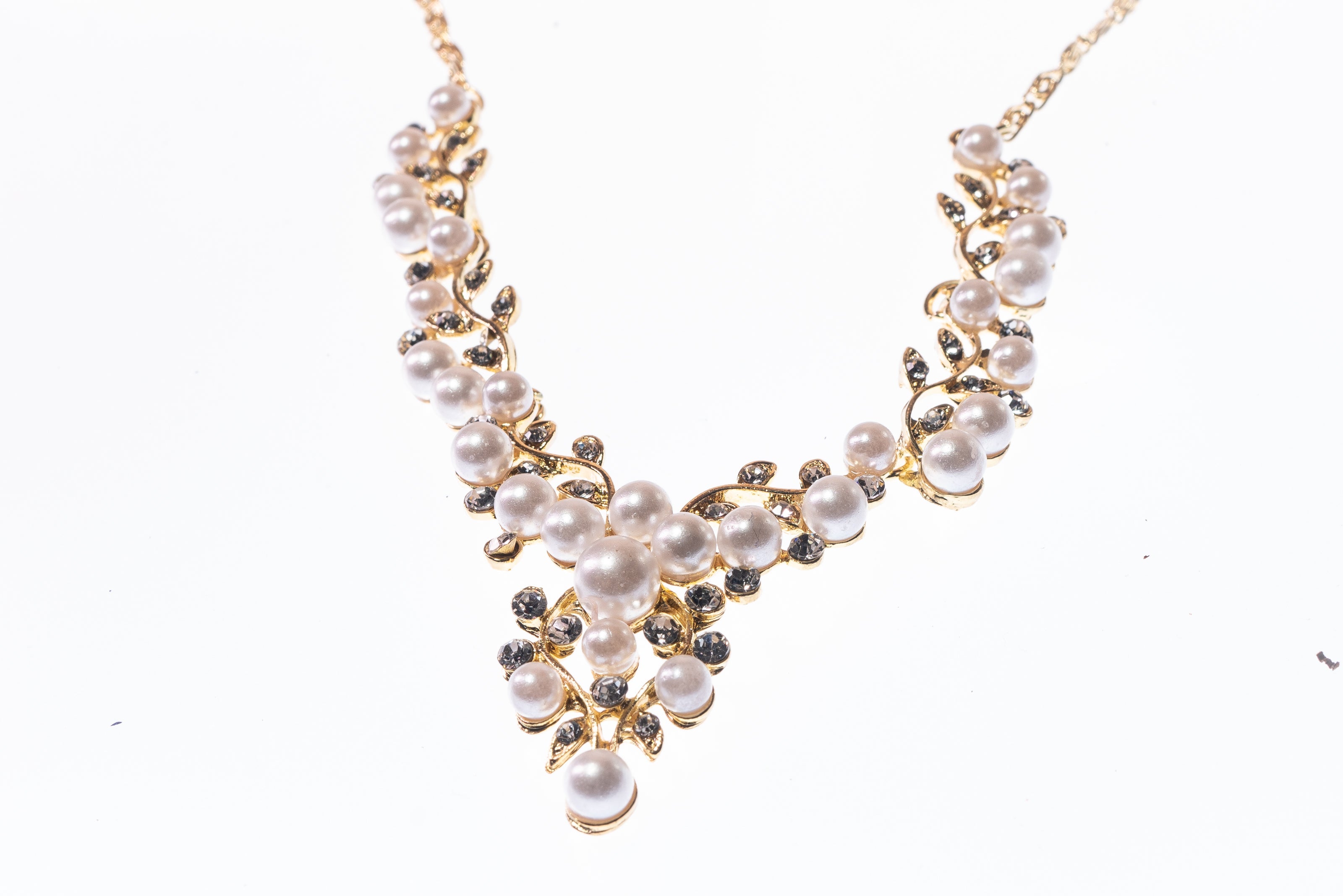 Rhinestone Gold Social Necklace And Earring Set