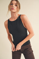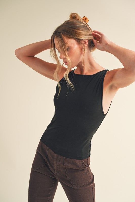 Elevate your essentials with Rodi high-neck tank. The figure-hugging silhouette and soft fabric blend seamlessly for a chic and comfortable look. A versatile piece that effortlessly combines style and comfort in your wardrobe essentials.