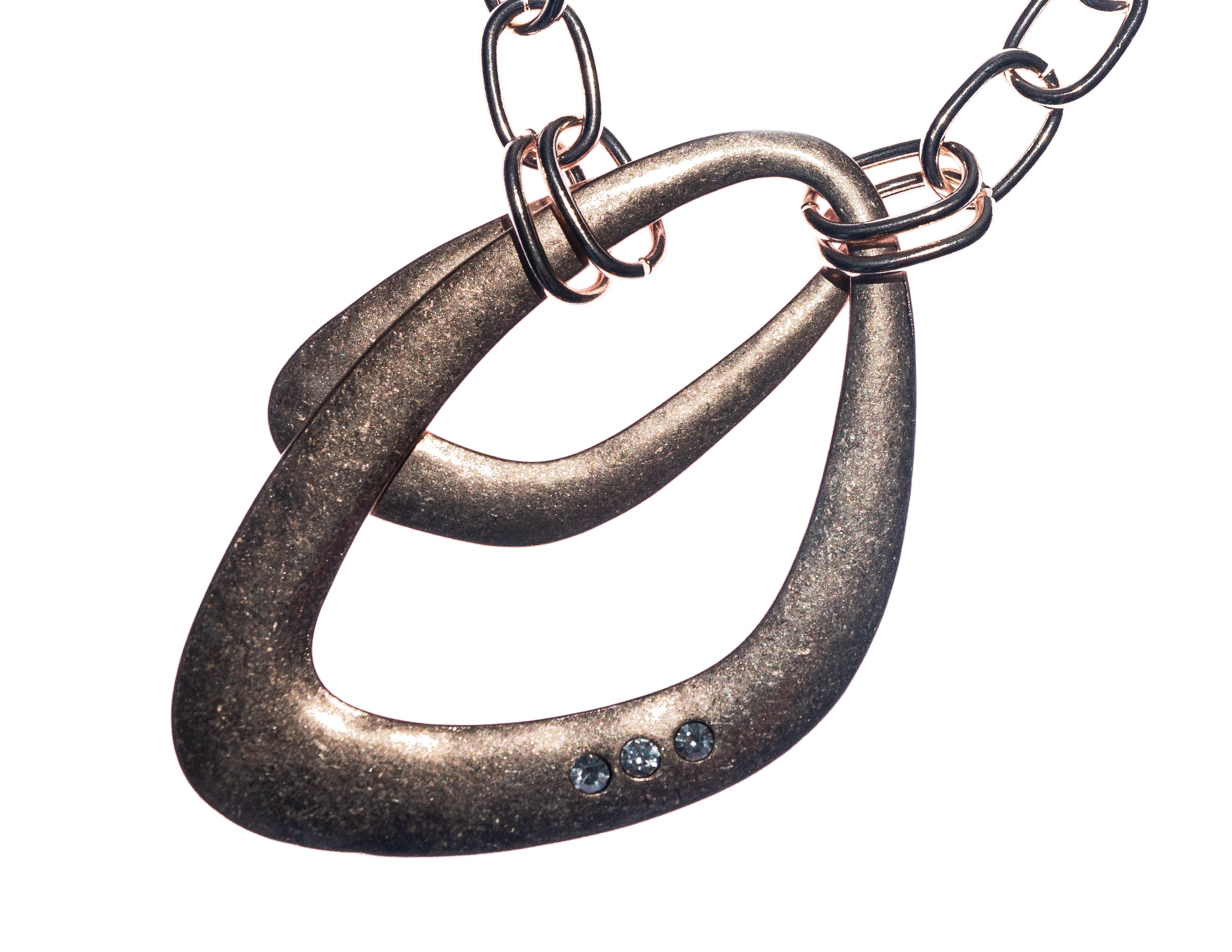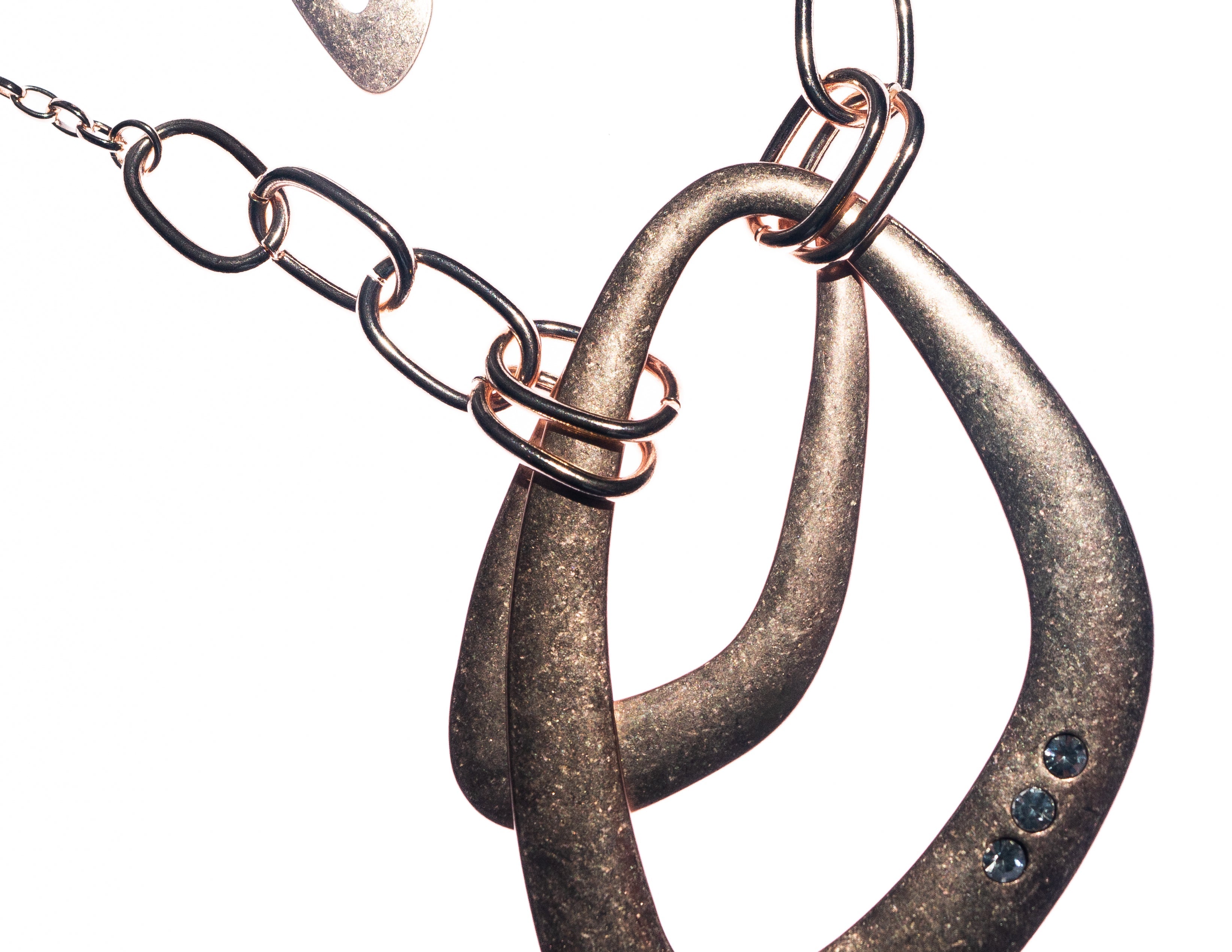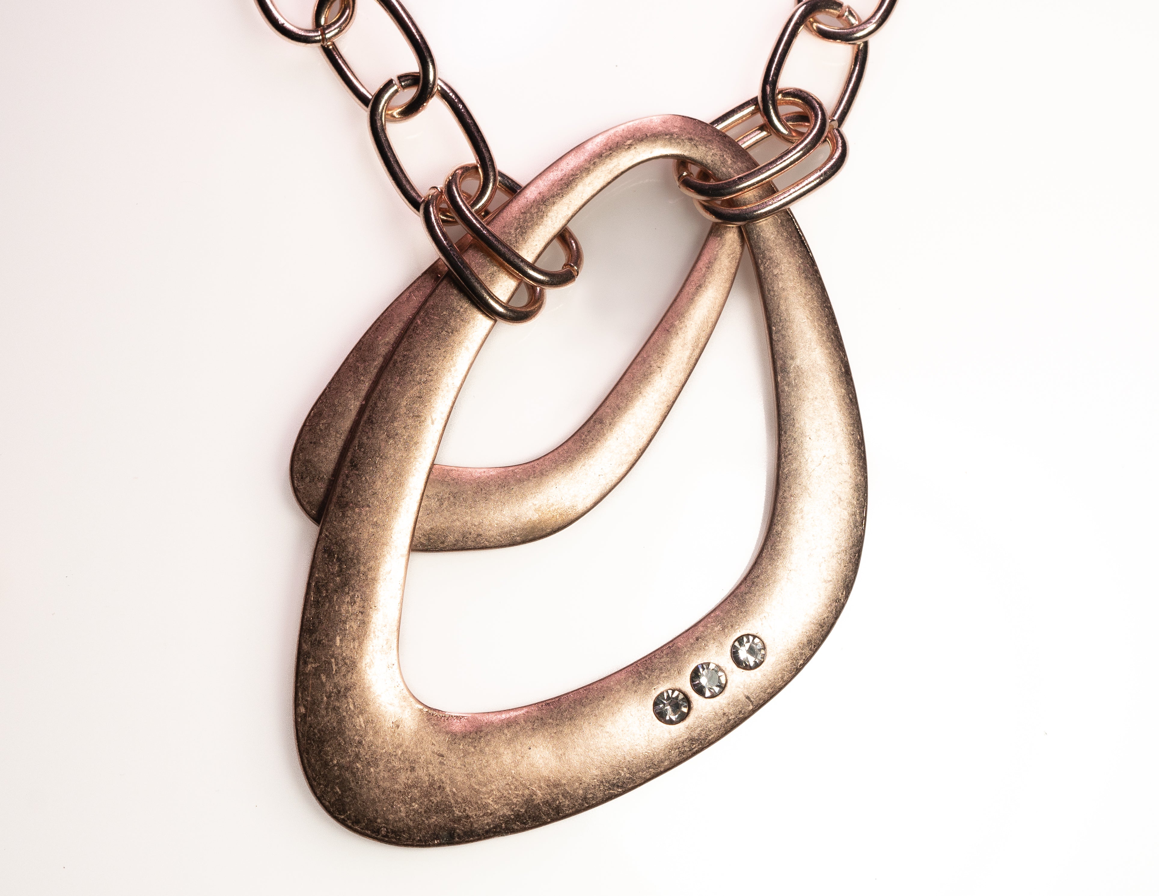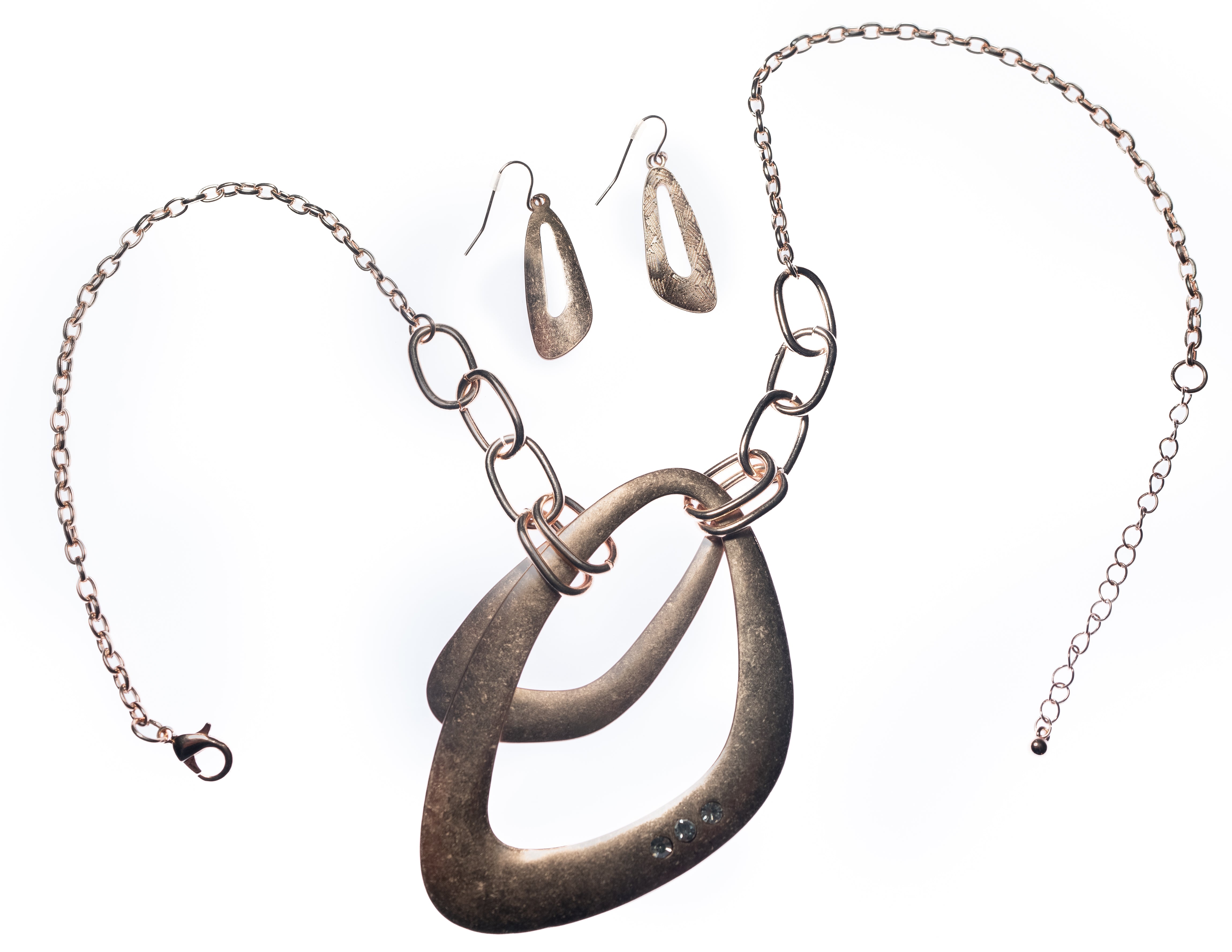 Rose Gold Link Double Pendant Necklace With Rhinestone And Earring Set