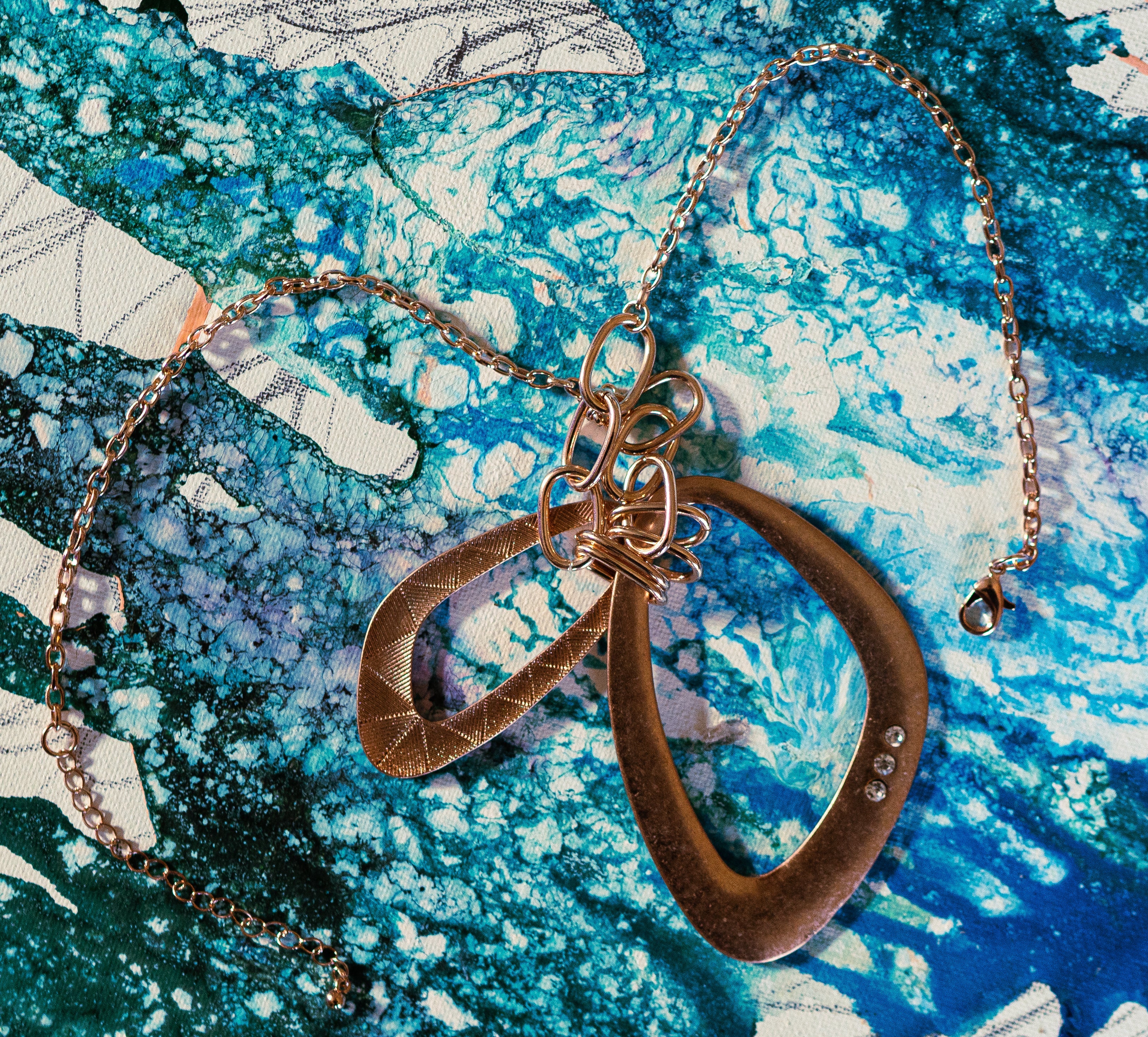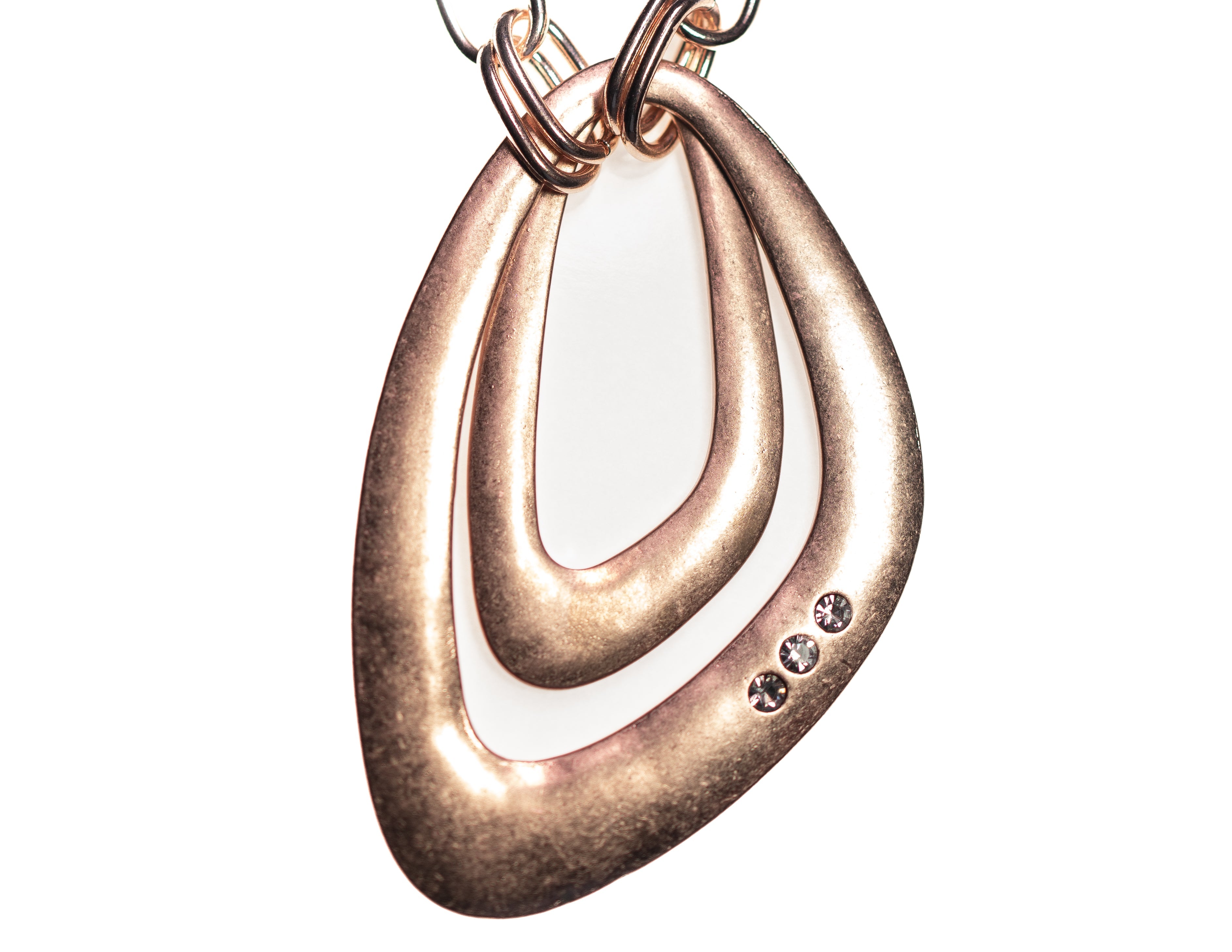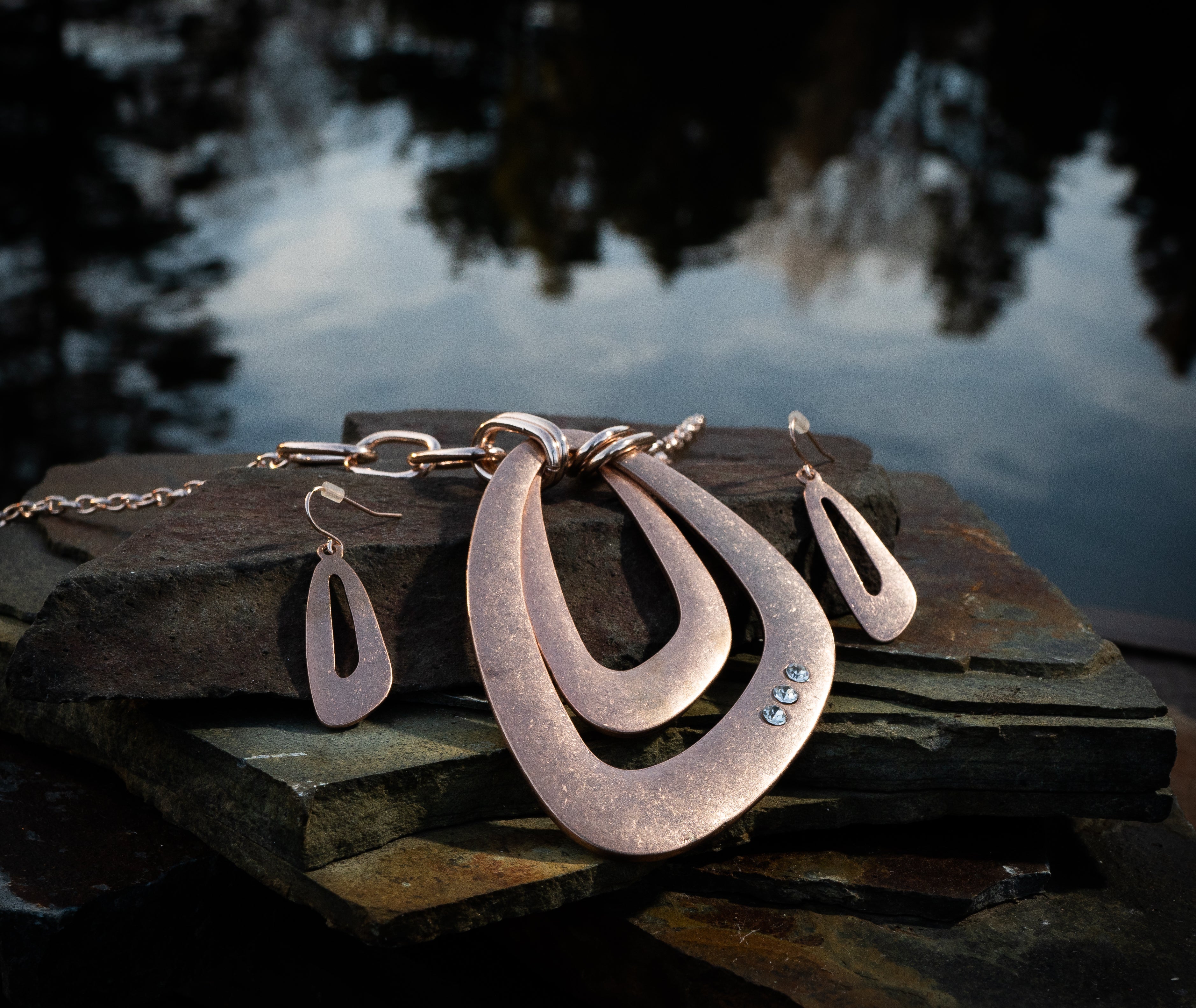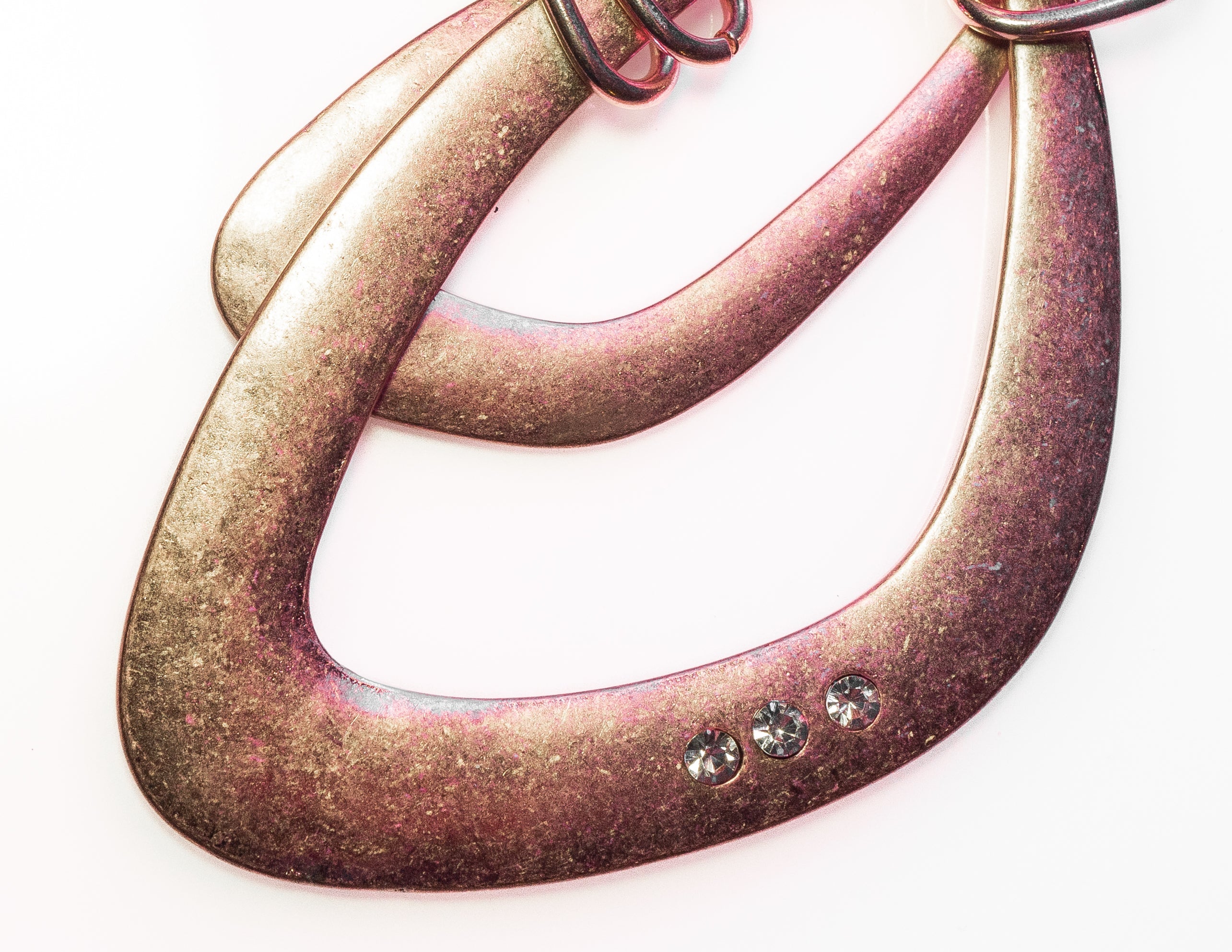 Rose Gold Link Double Pendant Necklace With Rhinestone And Earring Set