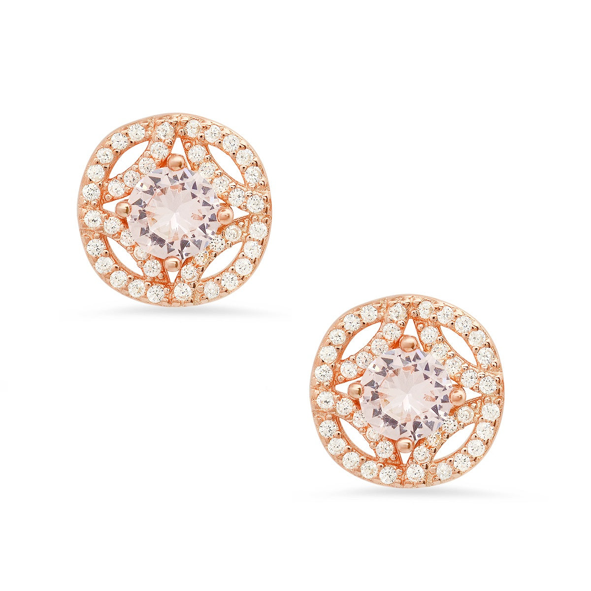 Rose Gold Over Silver Vintage Halo Morganite CZ Stud Earrings