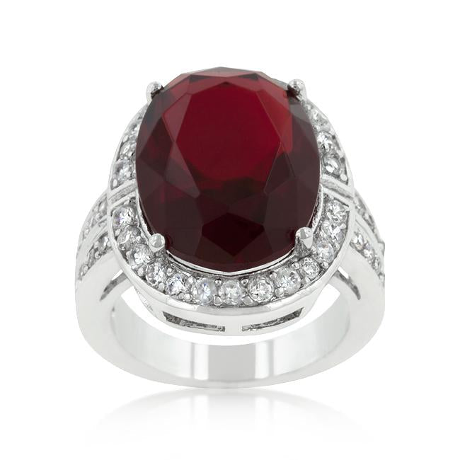 Make a statement with our Ruby Red Cocktail Ring! Our genuine rhodium finish is achieved using an electroplating process that coats the item with heavy layers of rhodium a close cousin to platinum which gives our jewelry a platinum luster.