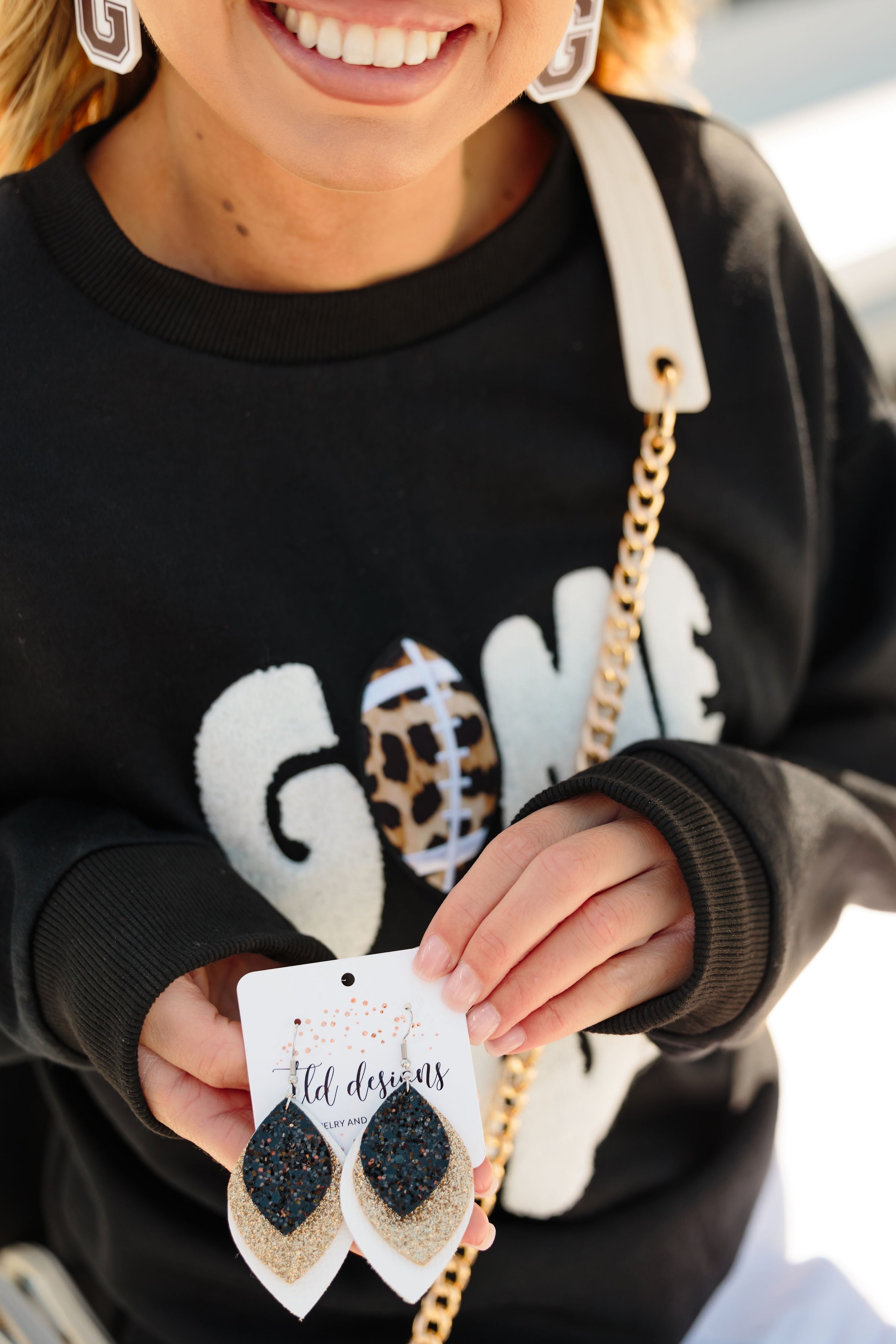 Customize your own school spirit earrings in our infamous TLD Triple Arrows or Pears!! These are all genuine leather and can add a little sparkle to your game day jewelry. Be sure to list your requested colors in your notes at checkout!!