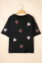 Sequin Strawberry High Low Half Sleeve Relaxed Fit T-Shirt