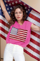Sequin US Flag Round Neck Sweater Vest