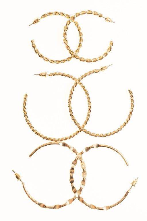 Set Of 3 Multi Texture Hoop Earrings On A Card