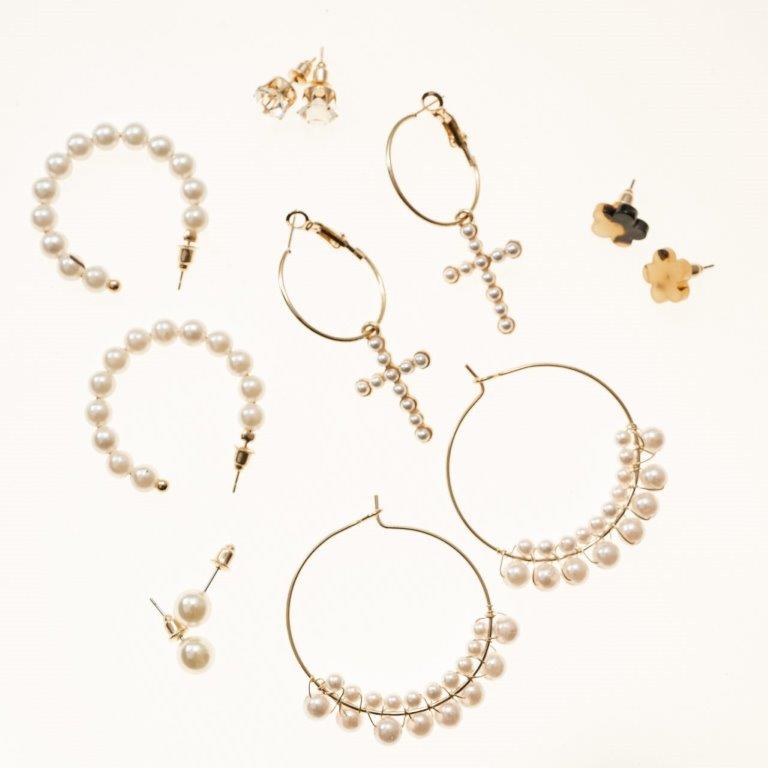 Set Of 6 Multi Pearl Stud And Hoop Earrings