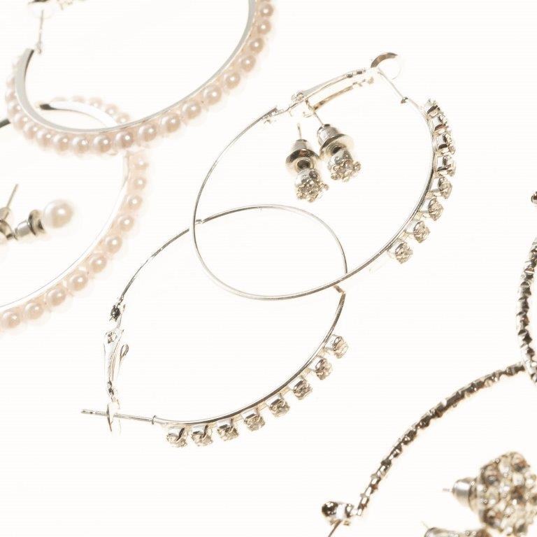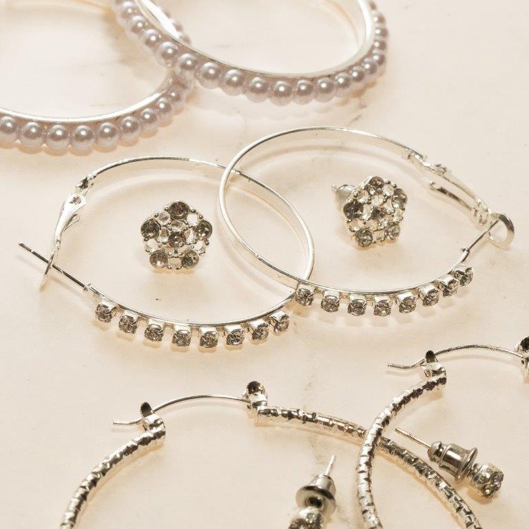 Set Of 6 Silver Multi Stud And Hoop Earrings
