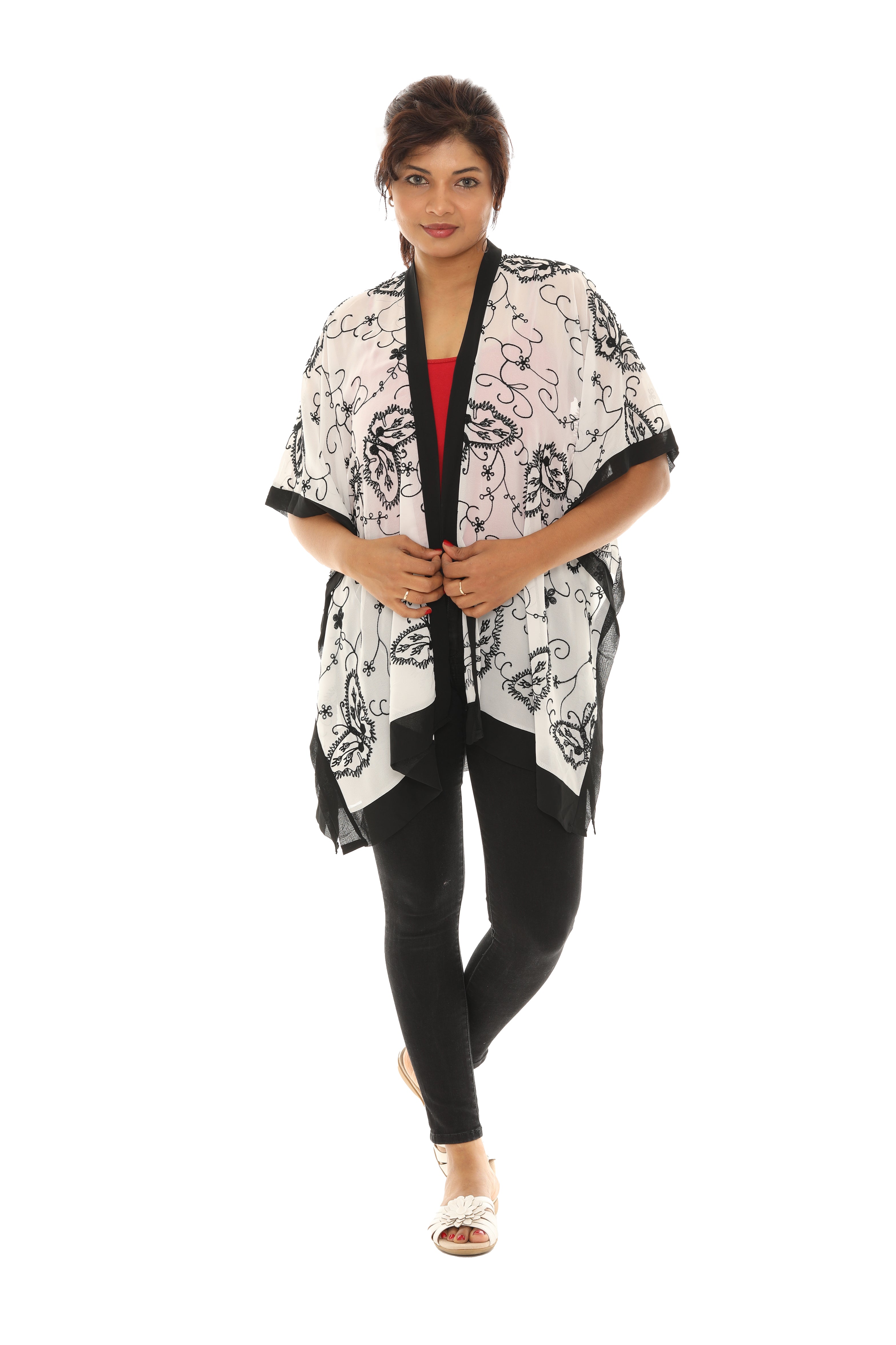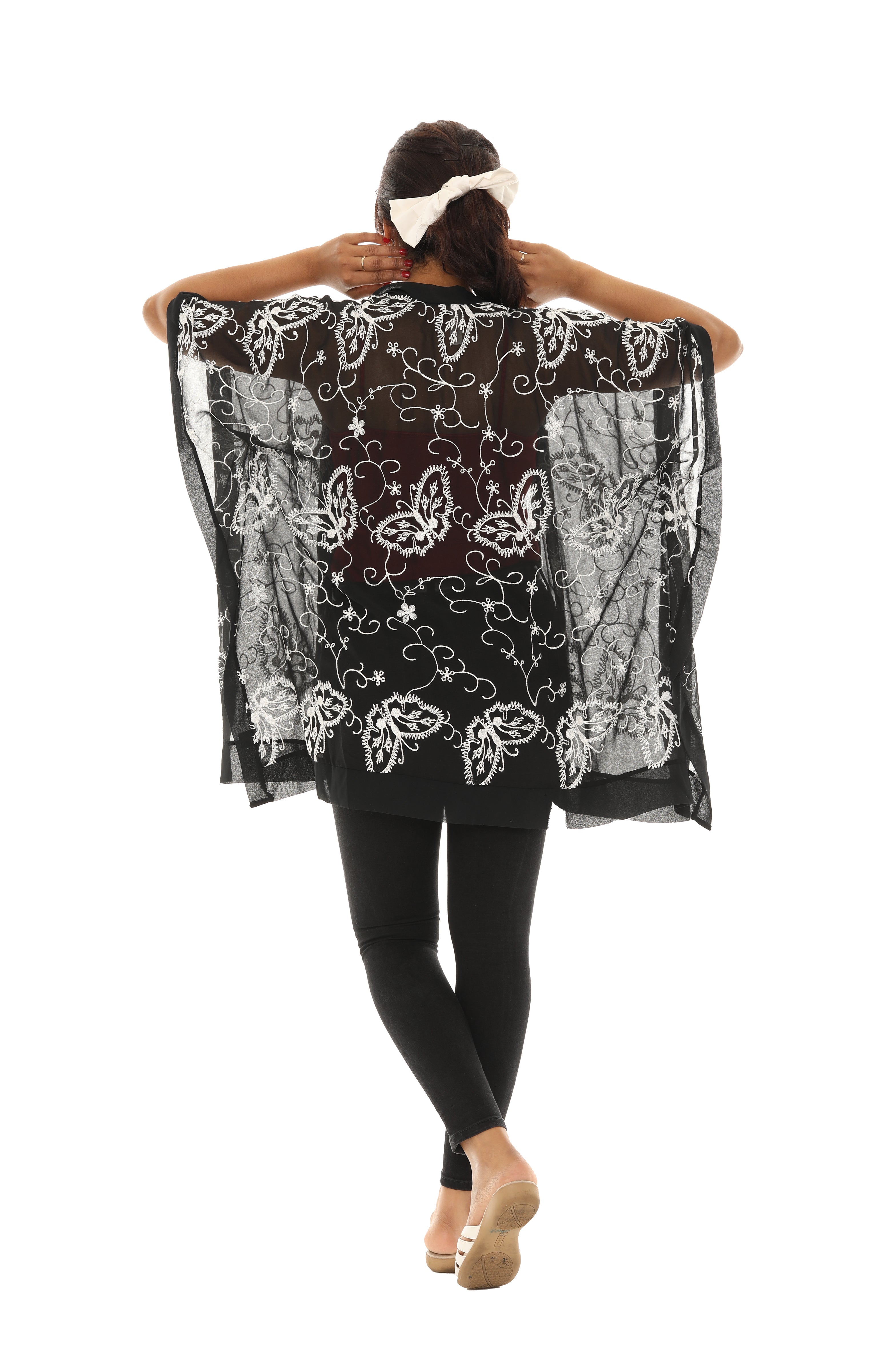Cover up with style in this fanciful embroidered cardigan featuring a sheer open look perfect for pairing with your favorite tops.