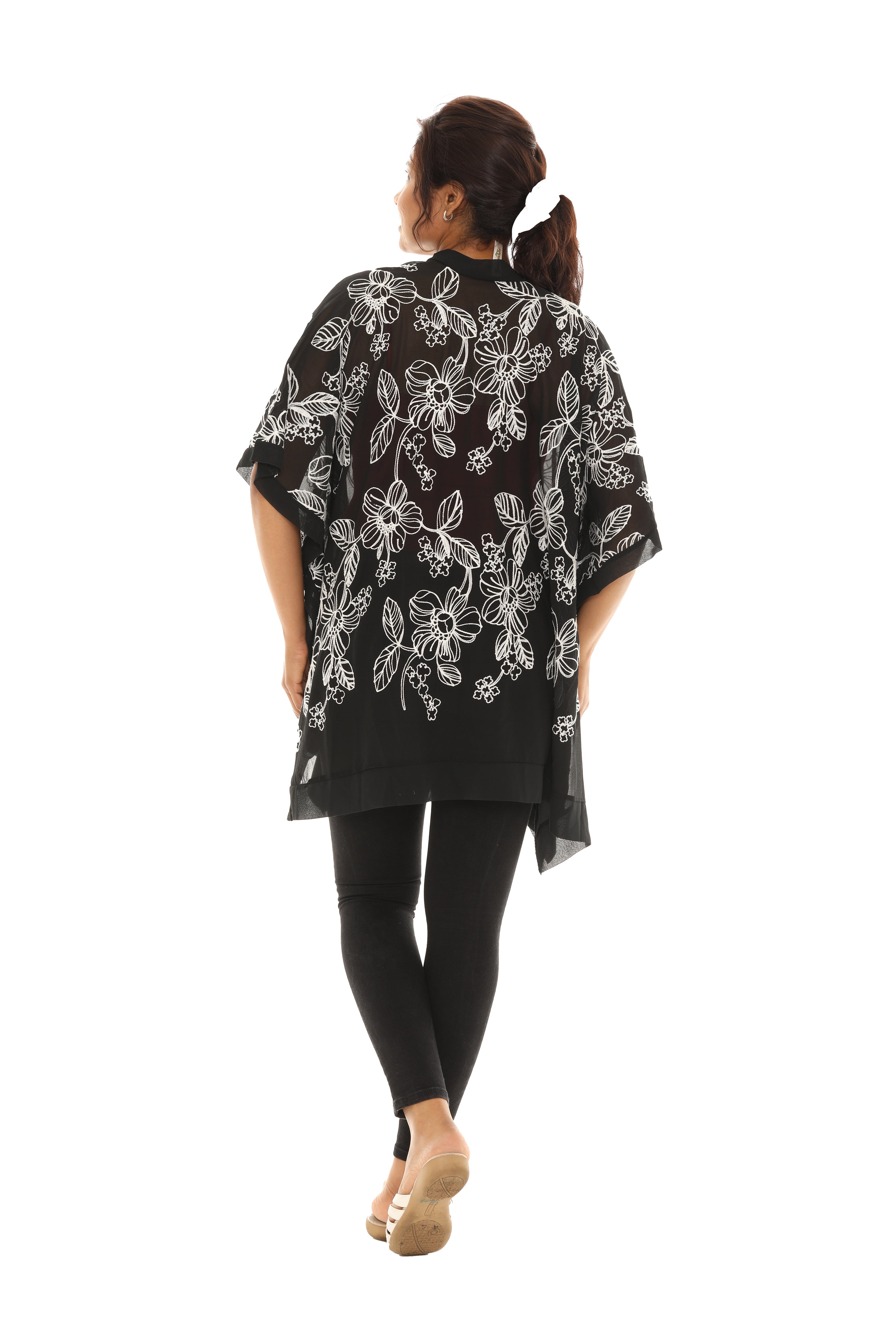 Cover up with style in this fanciful embroidered cardigan featuring a sheer open look perfect for pairing with your favorite tops.