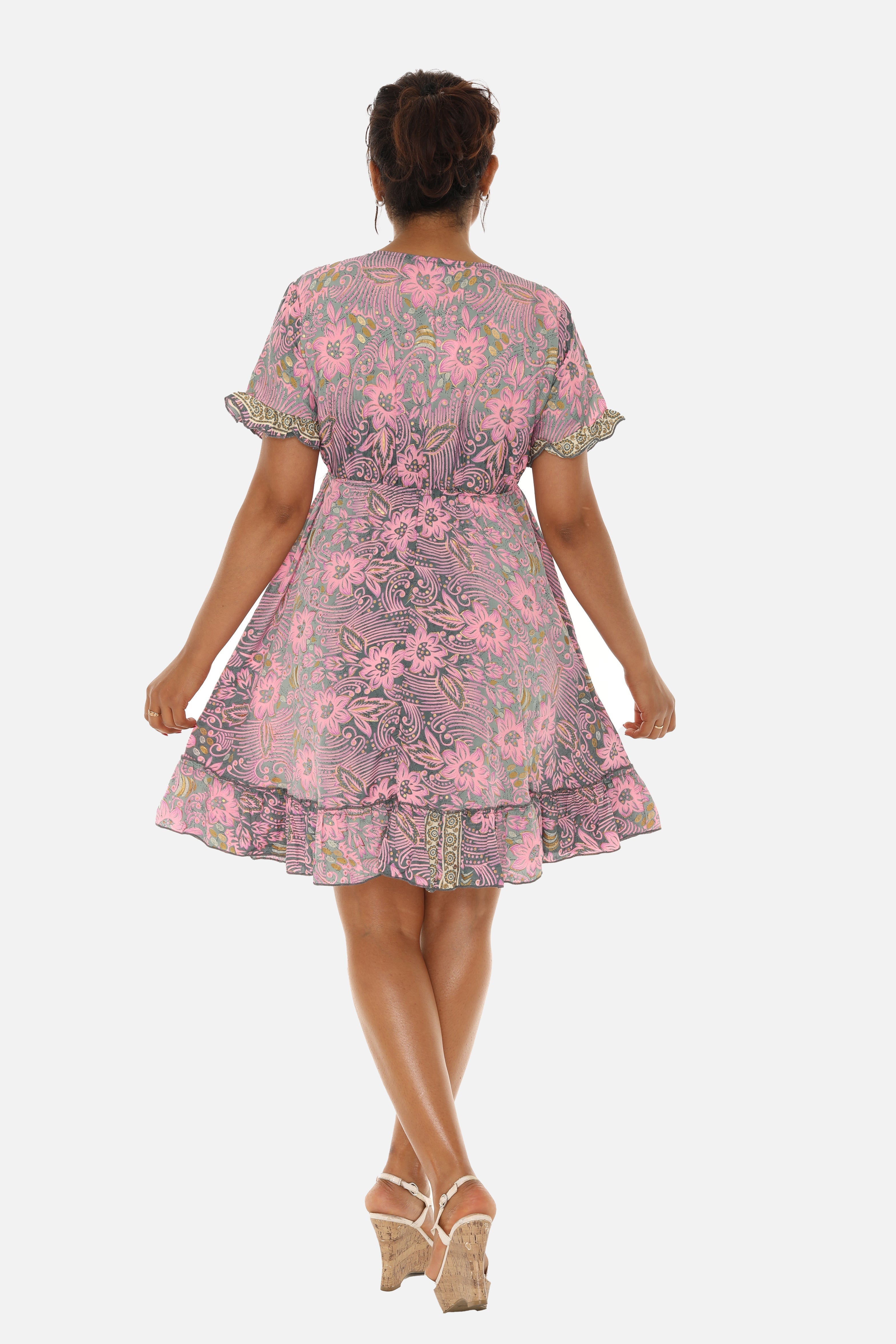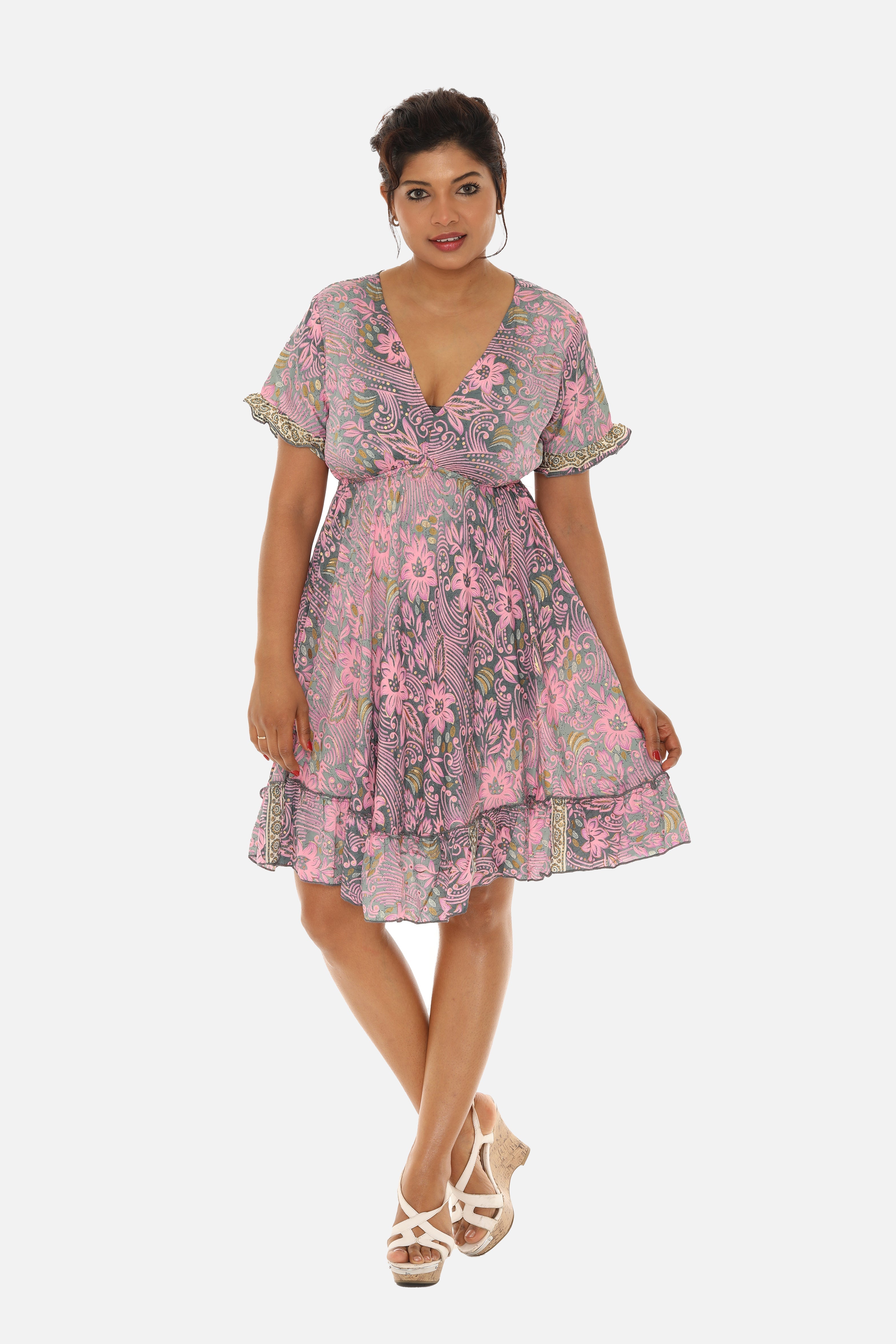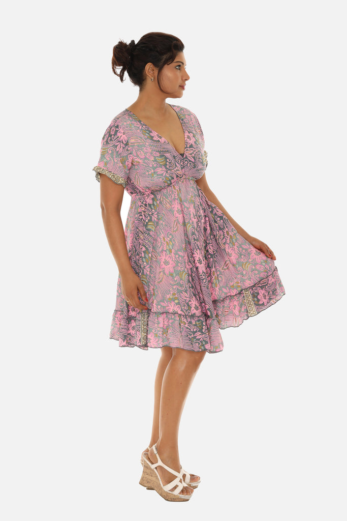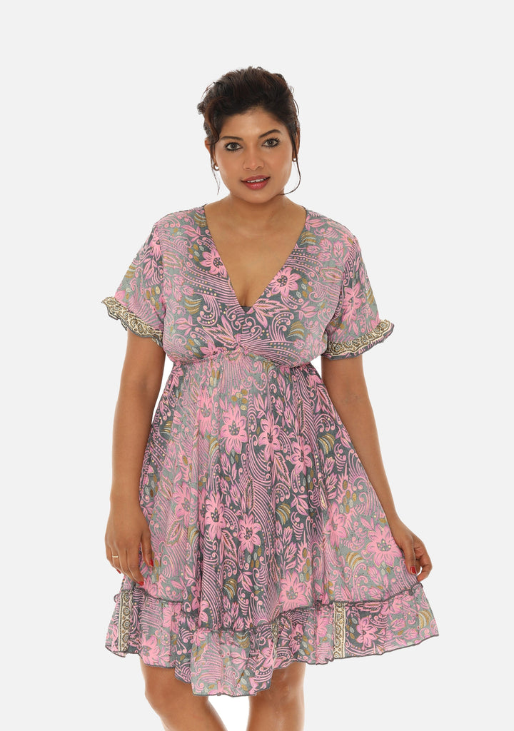 Short Sleeve V-Neck Floral Dress