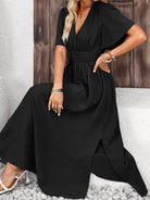 Side Slit Surplice Flutter Sleeve Midi Dress