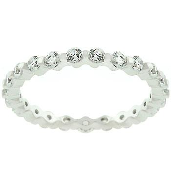Have everyone talking when you show up in this .925 sterling silver eternity band. Our genuine rhodium finish is achieved using an electroplating process that coats the item with heavy layers of rhodium a close cousin to platinum which gives our jewelry a platinum luster.