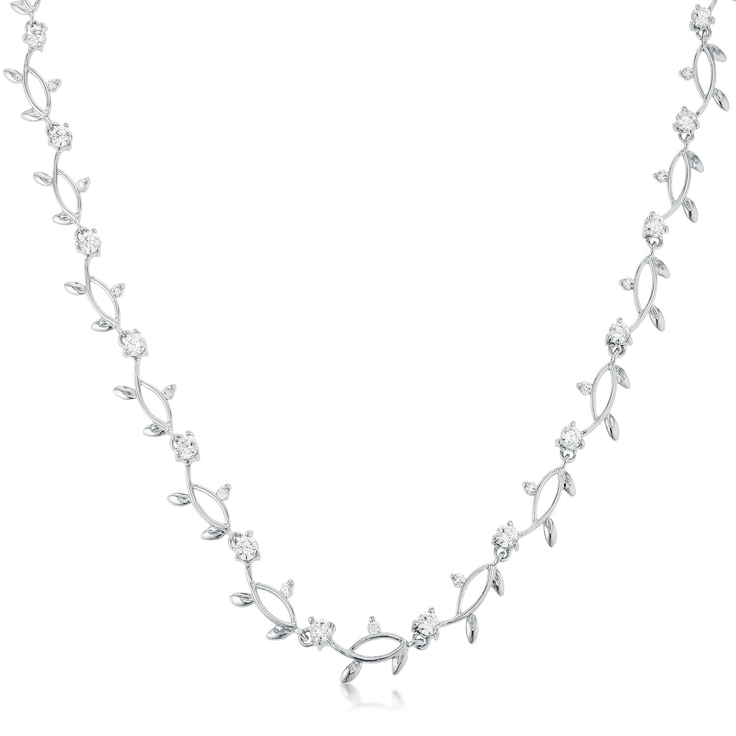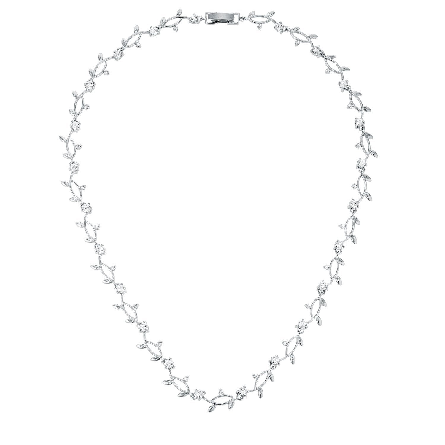 Add a touch of natural elegance with this feminine vine necklace. Plated with genuine rhodium this beautiful necklace sparkles for a timeless elegant look. Its the perfect bridal necklace and adds effortless style to any formal evening ensemble.