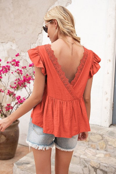 Back Deep V-Neck Babydoll Top