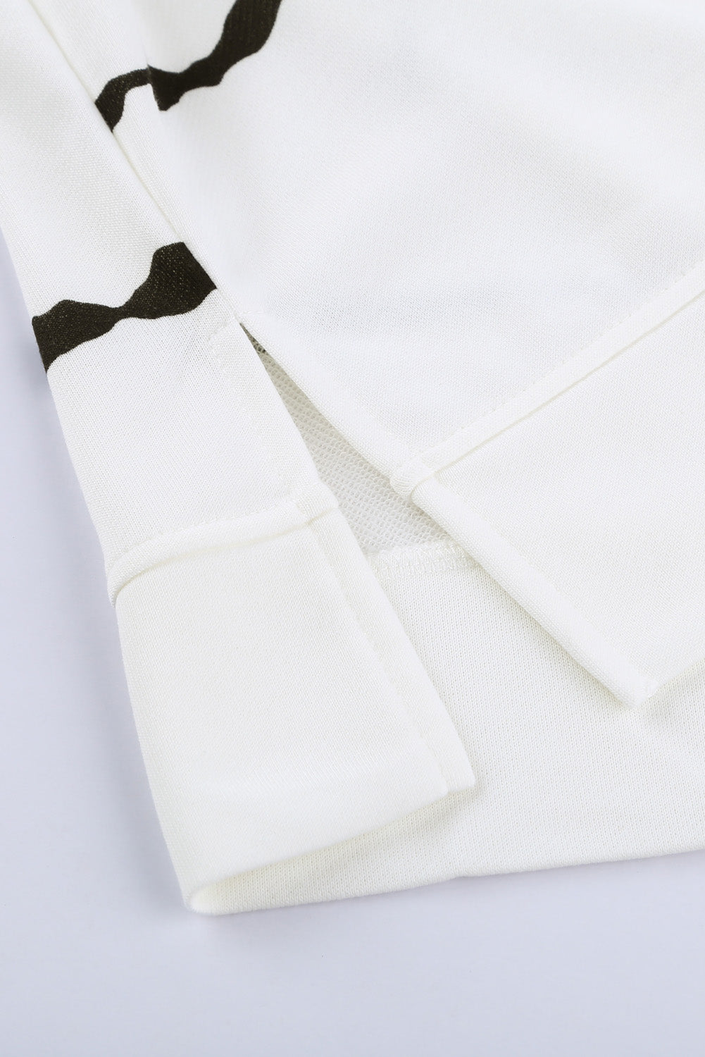 Slit Contrast Striped Round Neck Long Sleeve T-Shirt