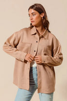 SO ME Faux Sued Snap Shacket with Collar and Pockets