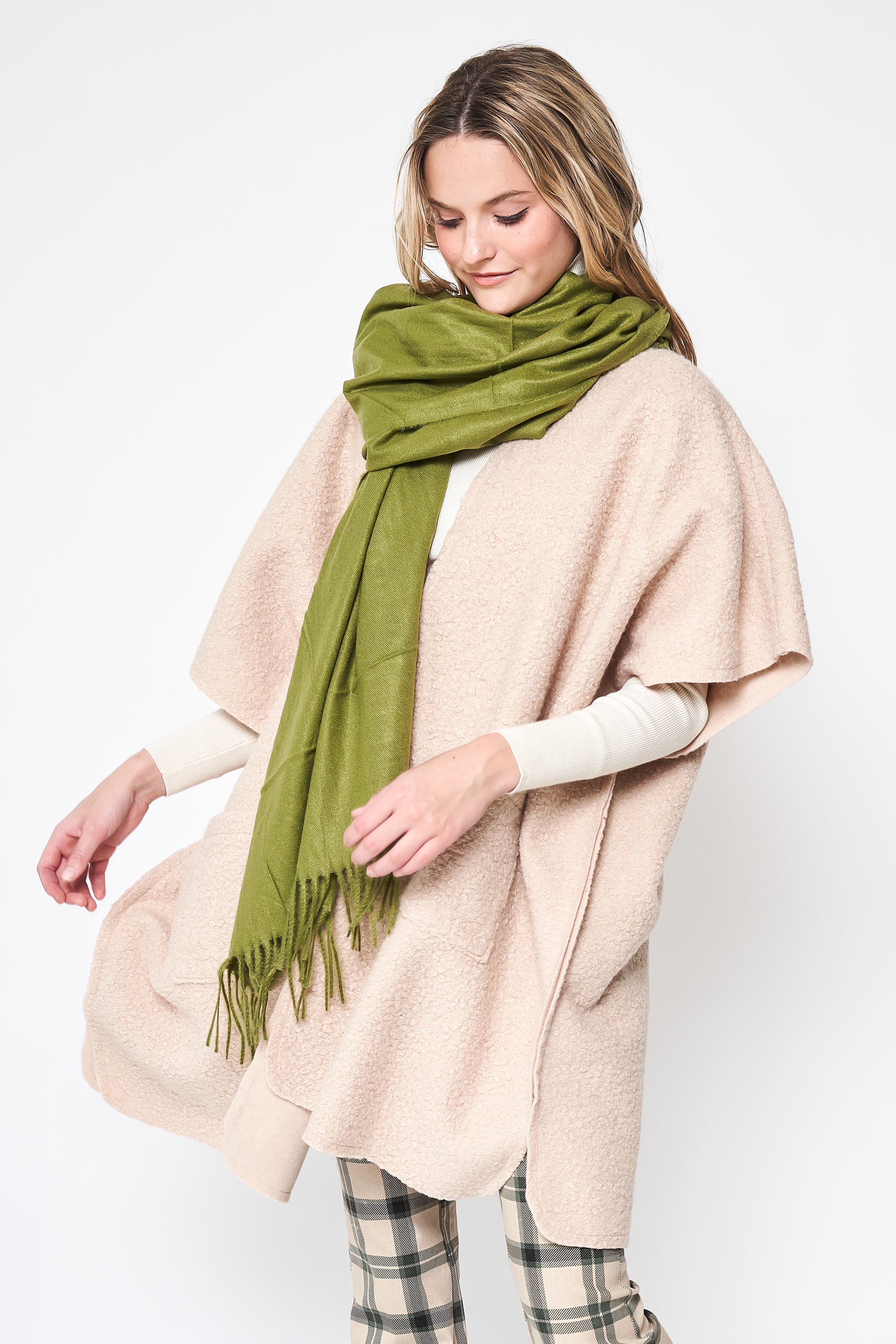 Solid Cozy Scarf With Fringe