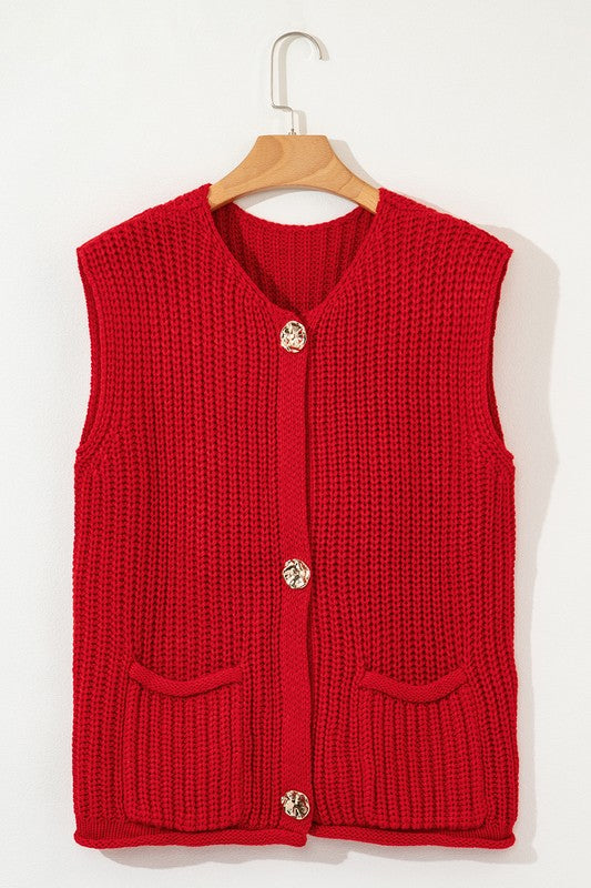 Featuring convenient side pockets and button detailing, this vest combines practicality with fashion-forward design.