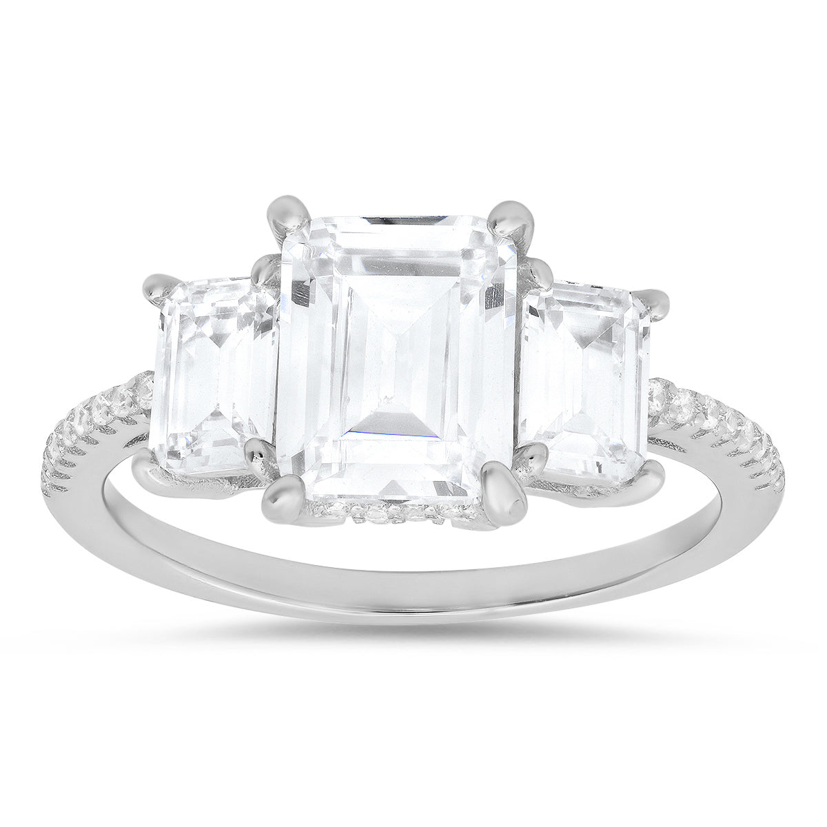 Sterling Silver 3-Stone Emerald-cut CZ Ring