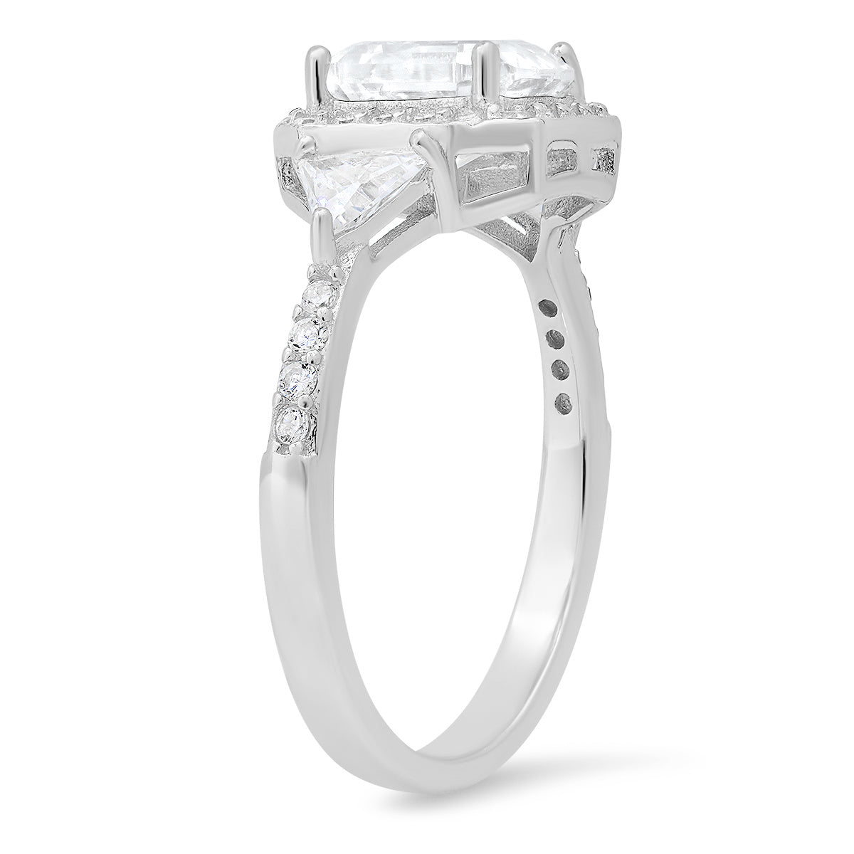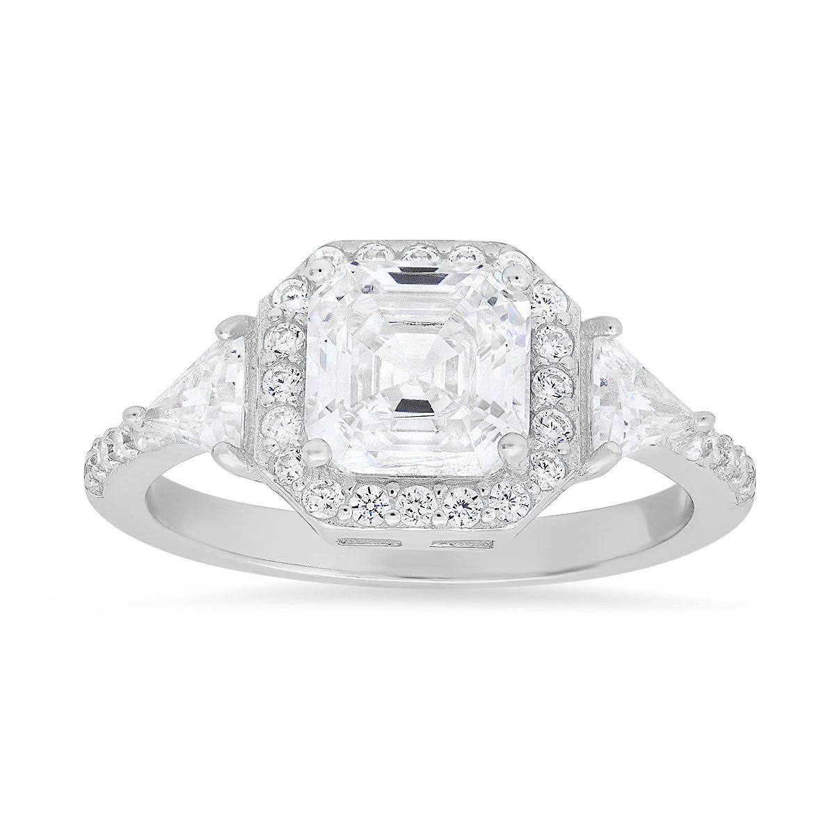 Sterling Silver Asscher-cut Diamond CZ Halo Ring