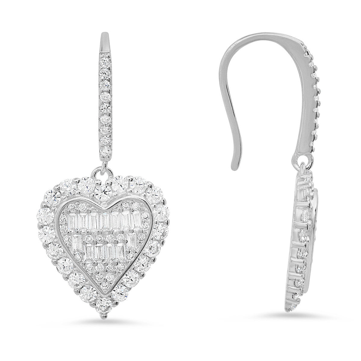 Sterling Silver Baguette CZ Halo Fishhook Earrings