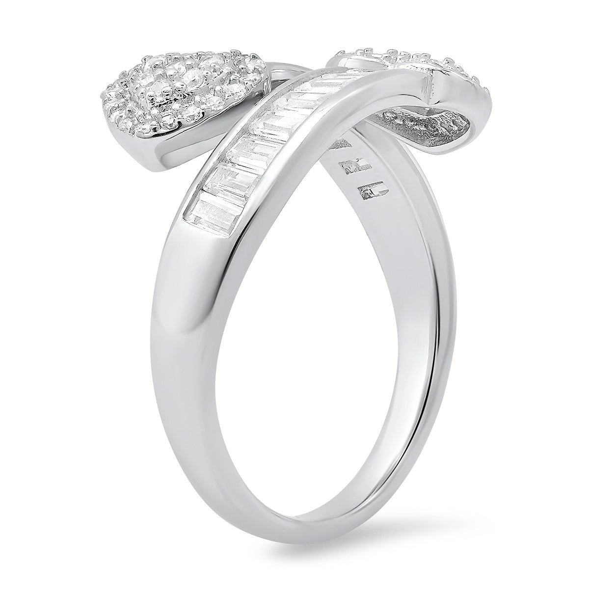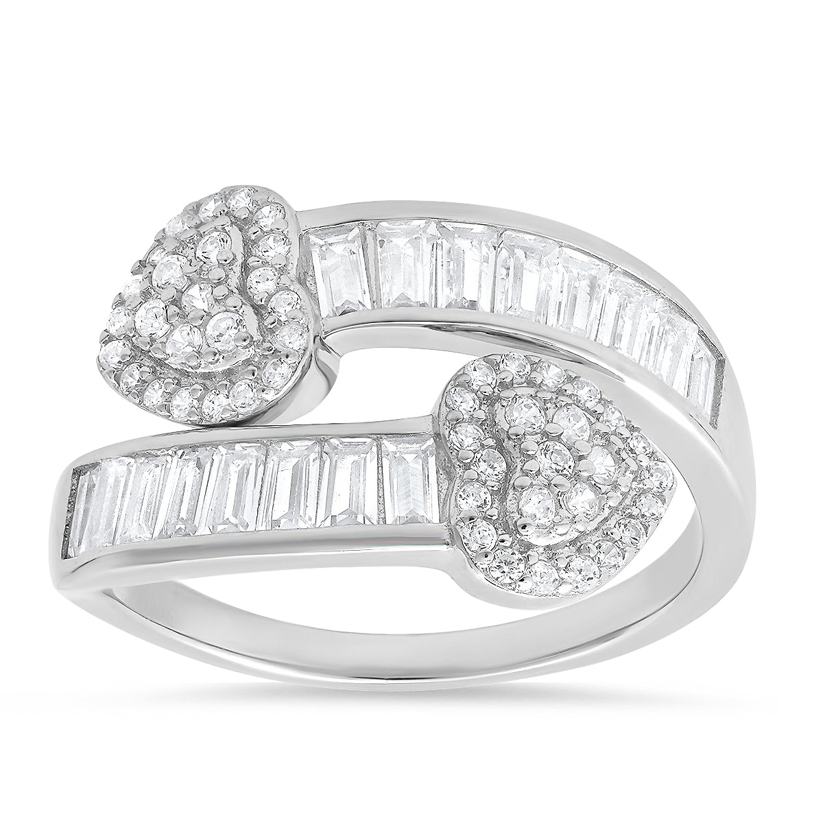 Sterling Silver Baguette CZ Heart Bypass Ring