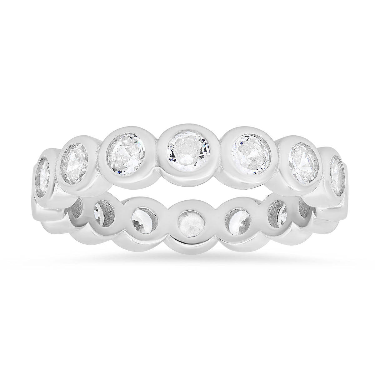 Sterling Silver Bezel-set Diamond CZ Eternity Band Ring