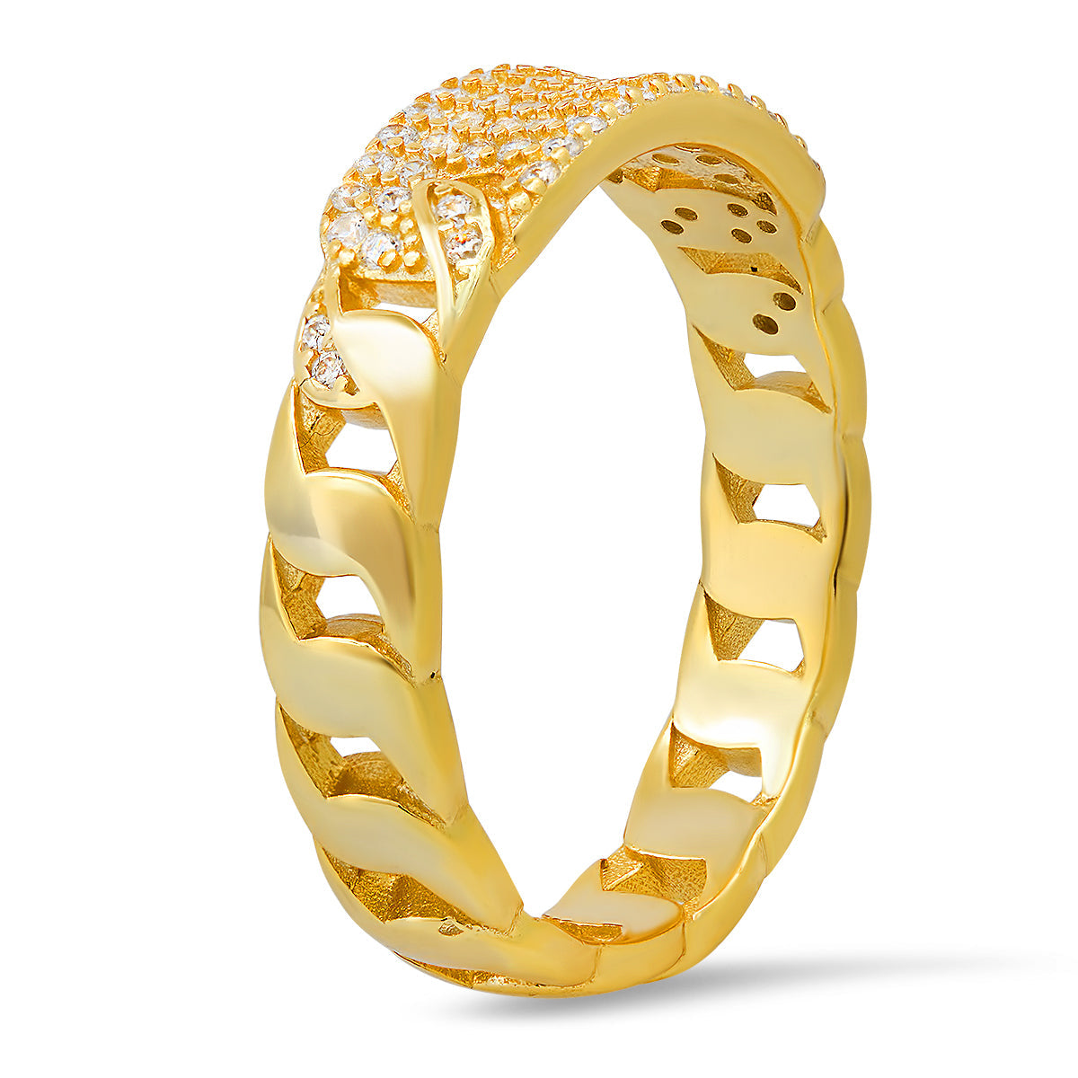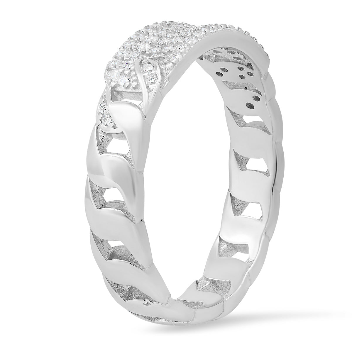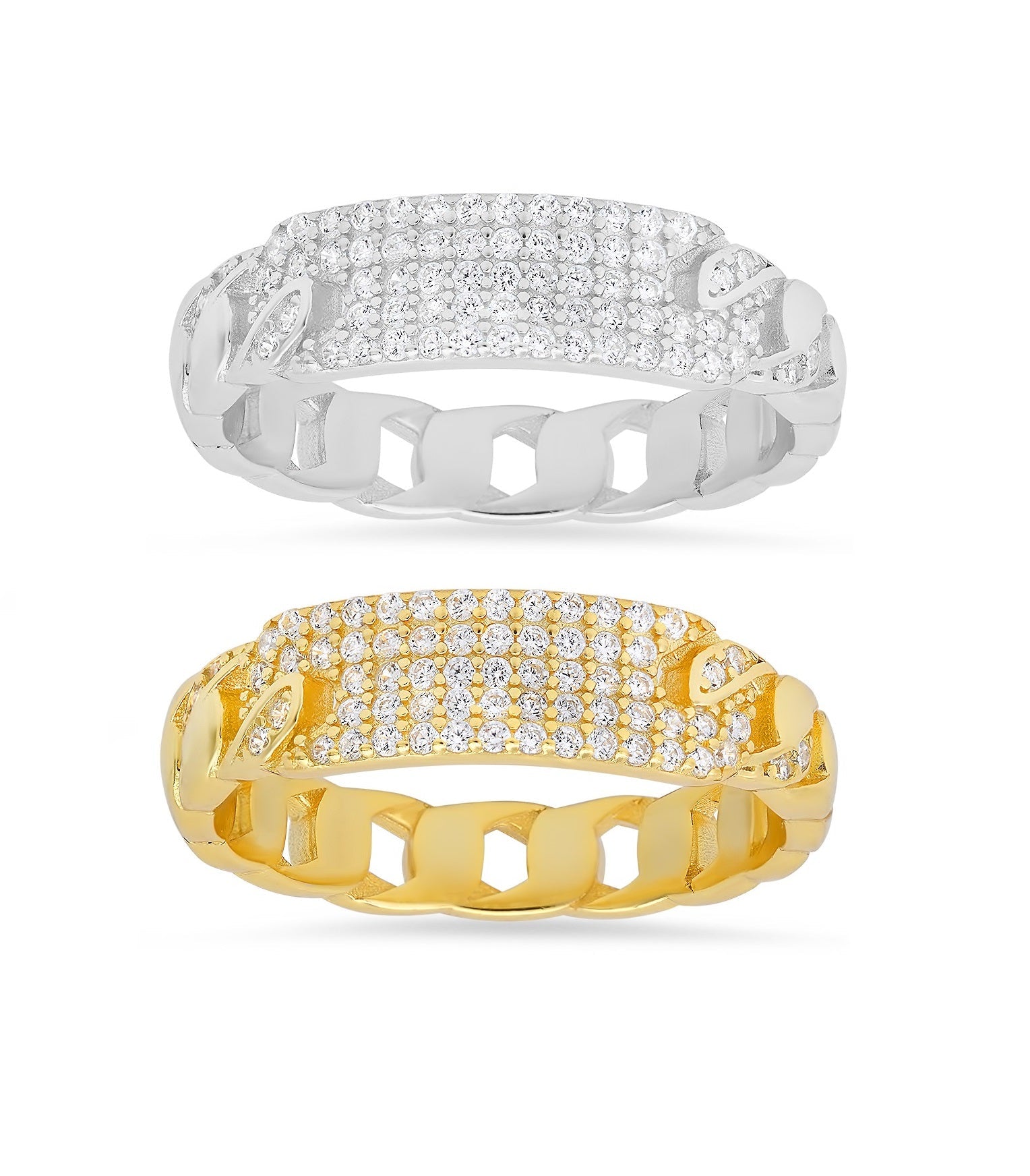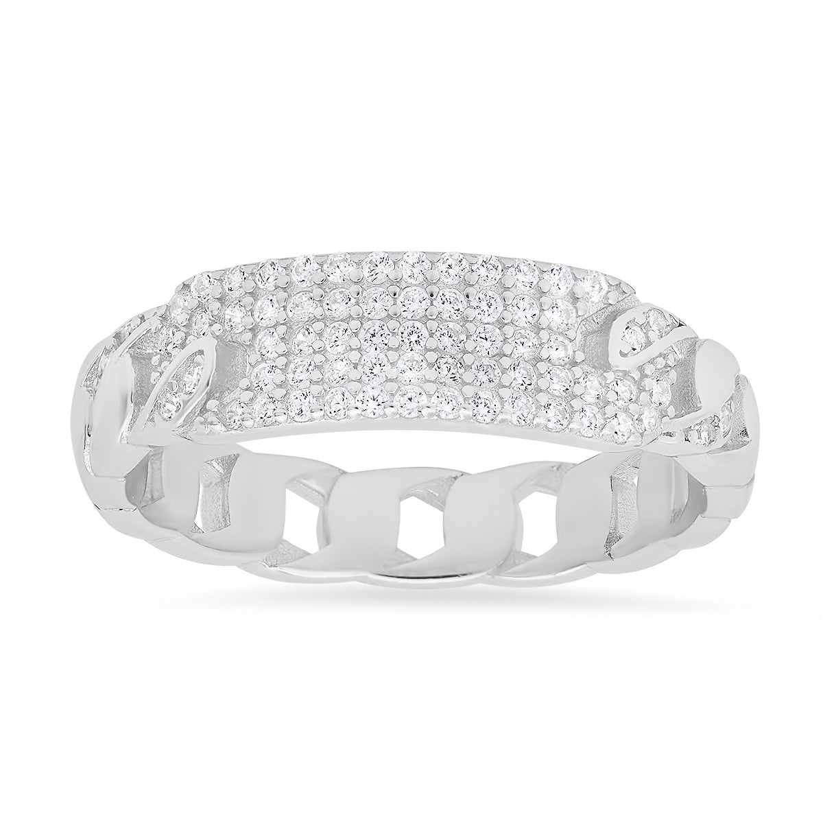 Sterling Silver Curb Chain Diamond CZ ID Ring
